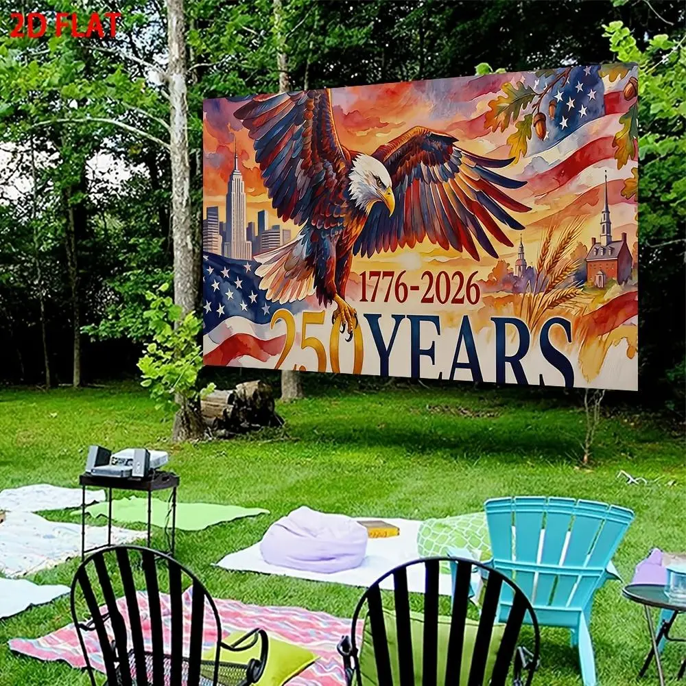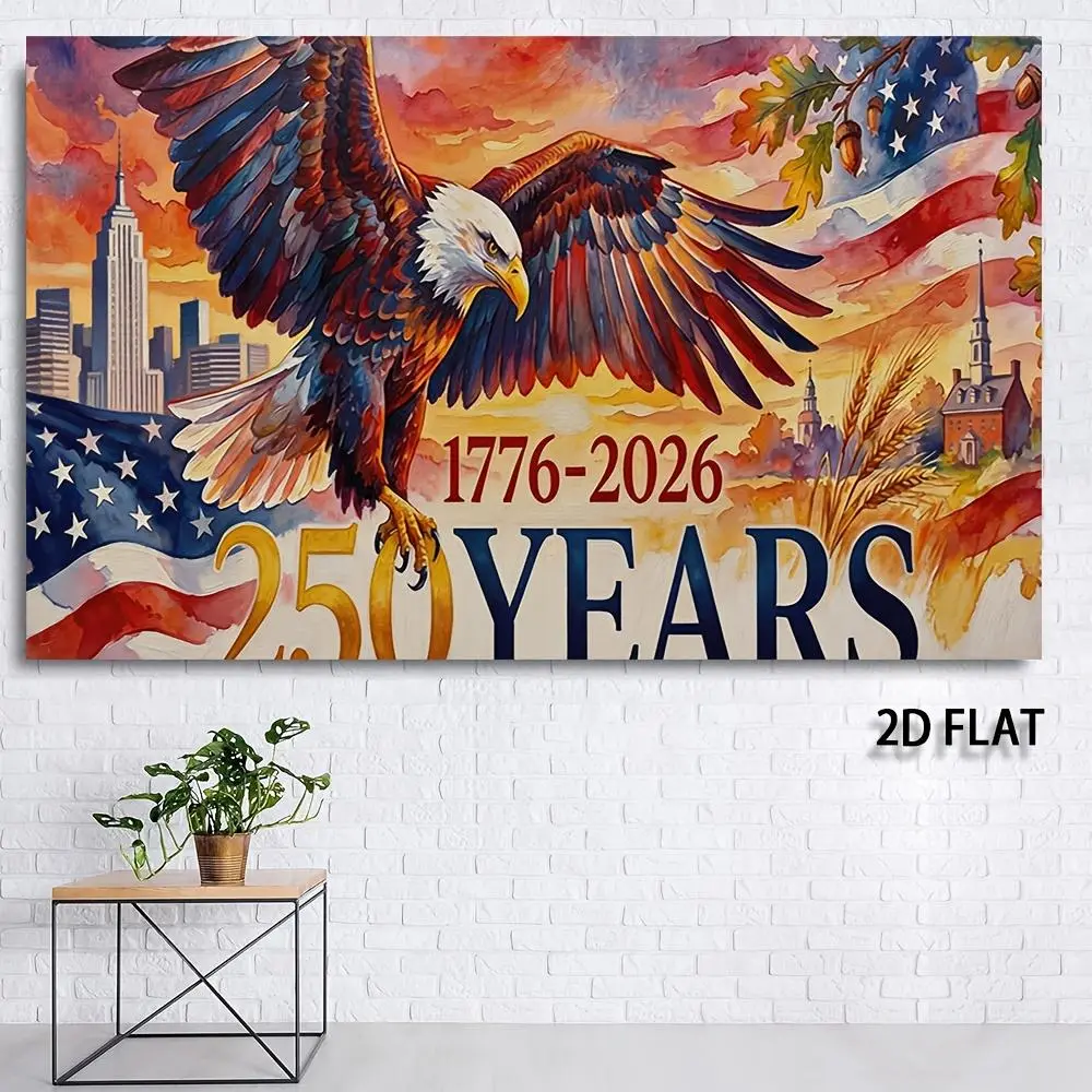5. 2D Flat, 1pc 250th Anniversary Banner Tapestry - Horizontal Patriotic Decoration Suitable for,, Office | Colorful National Celebration Background Fabric with Historical for 250 Years Events, Print for Decor, 2D Flat