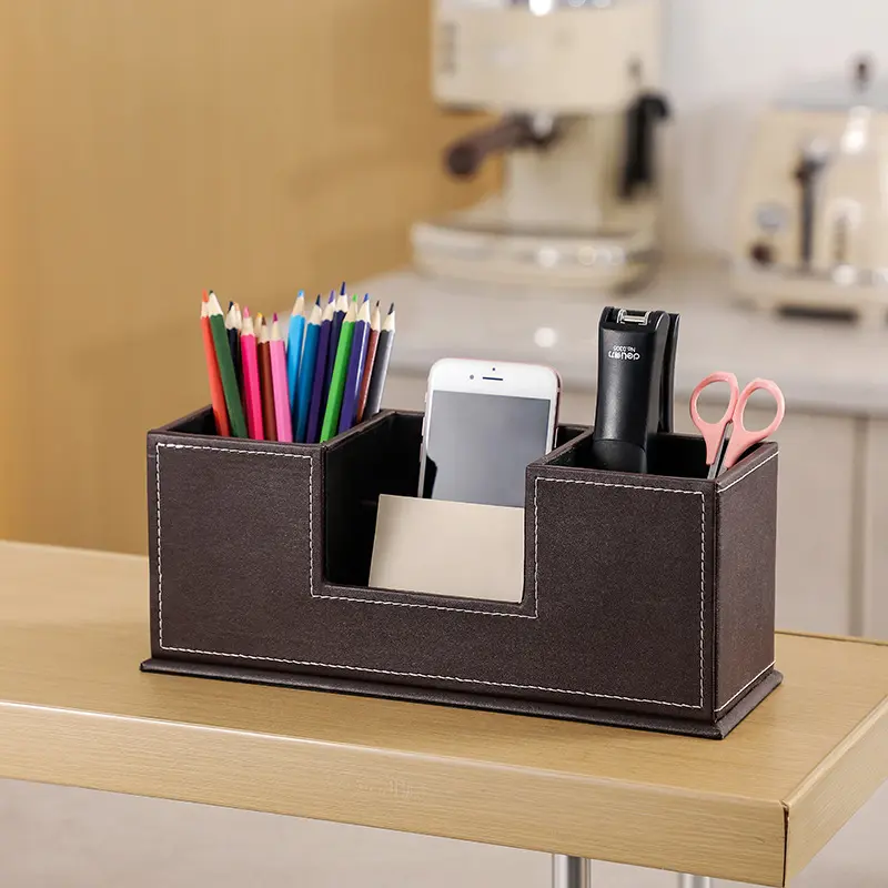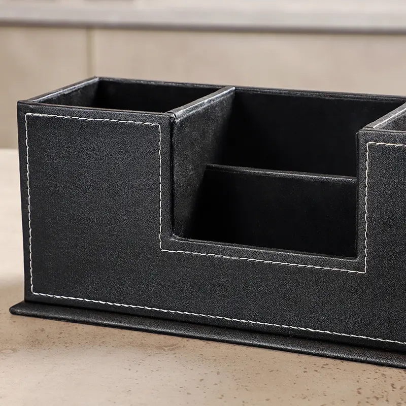 The sleek black/brown PU leather with white contrast stitching adds a modern, professional look to any desk, complementing home offices, corporate workspaces, and student dorms.It elevates your workspace while keeping it tidy.