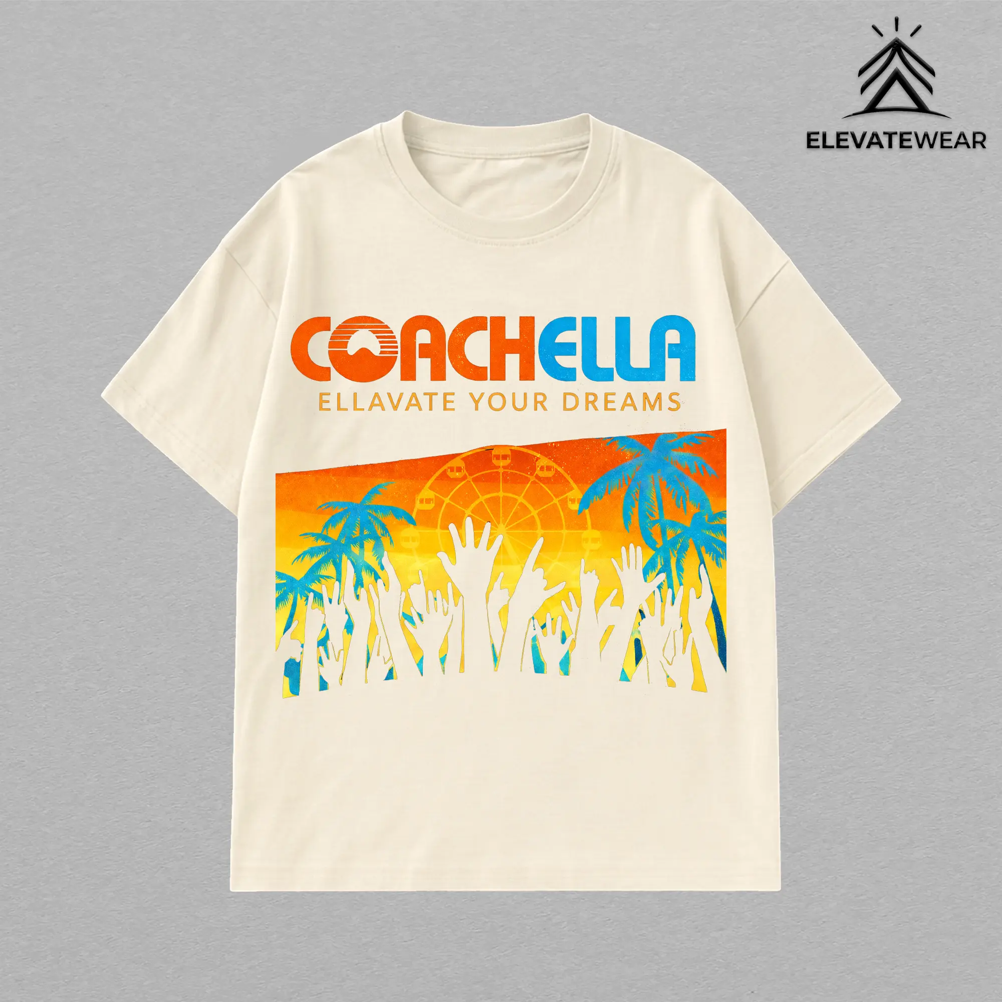 COACHELLA Ellavate Your Dreams Oversized Vintage Graphic T-Shirt, Festival Streetwear Summer Outfit, Retro Music Aesthetic Soft Cotton Unisex Shirt