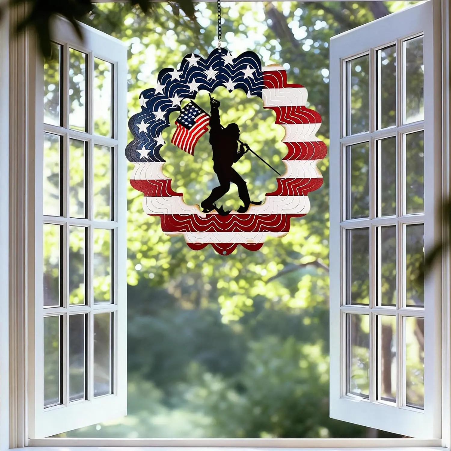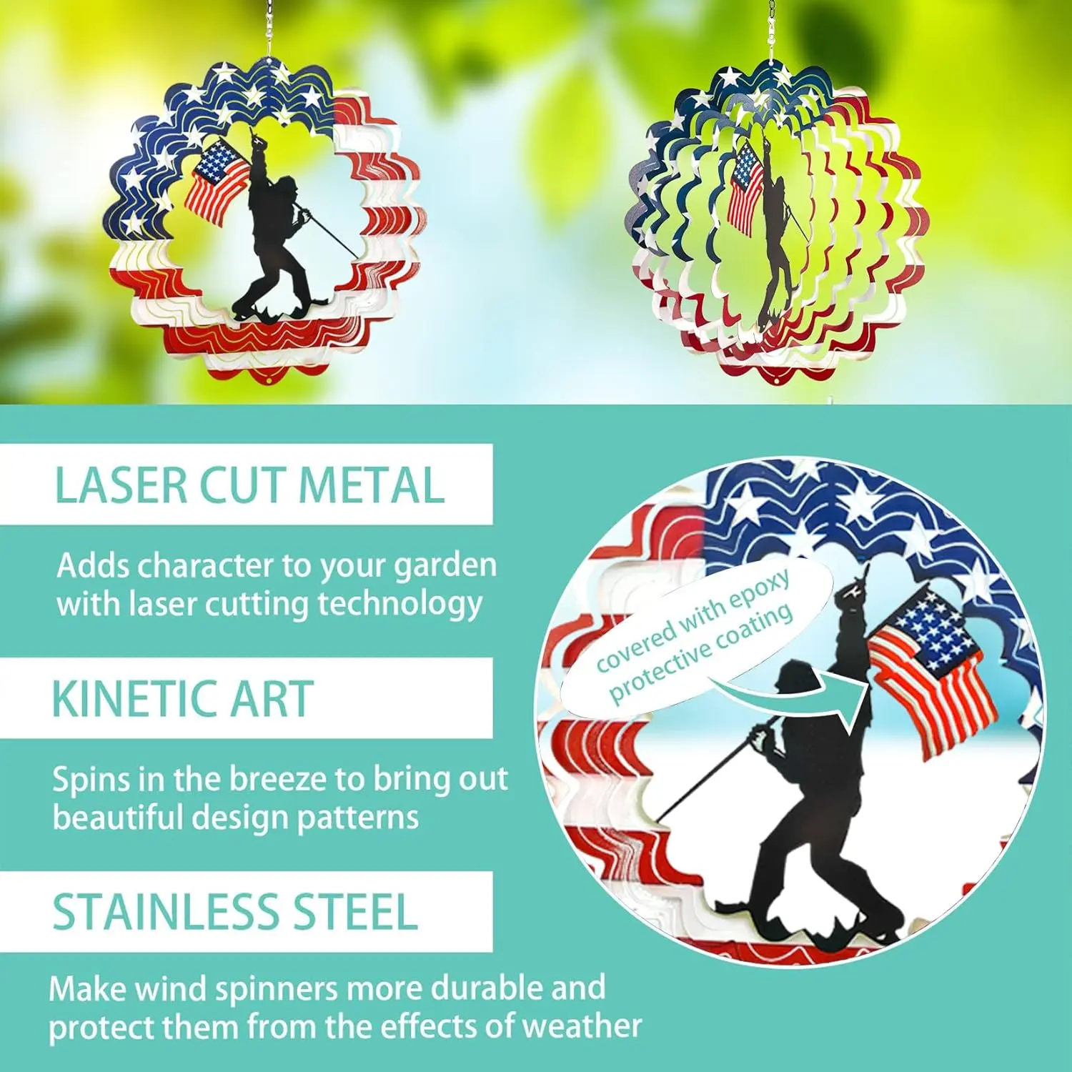 Sasquatch Gifts for Men, Big Foot Sasquatch Gifts Metal American Flag Wind Spinners, Bigfoot Gifts for Men, Patriotic Decorations Outdoor, for Dad, Father, Women, Mom