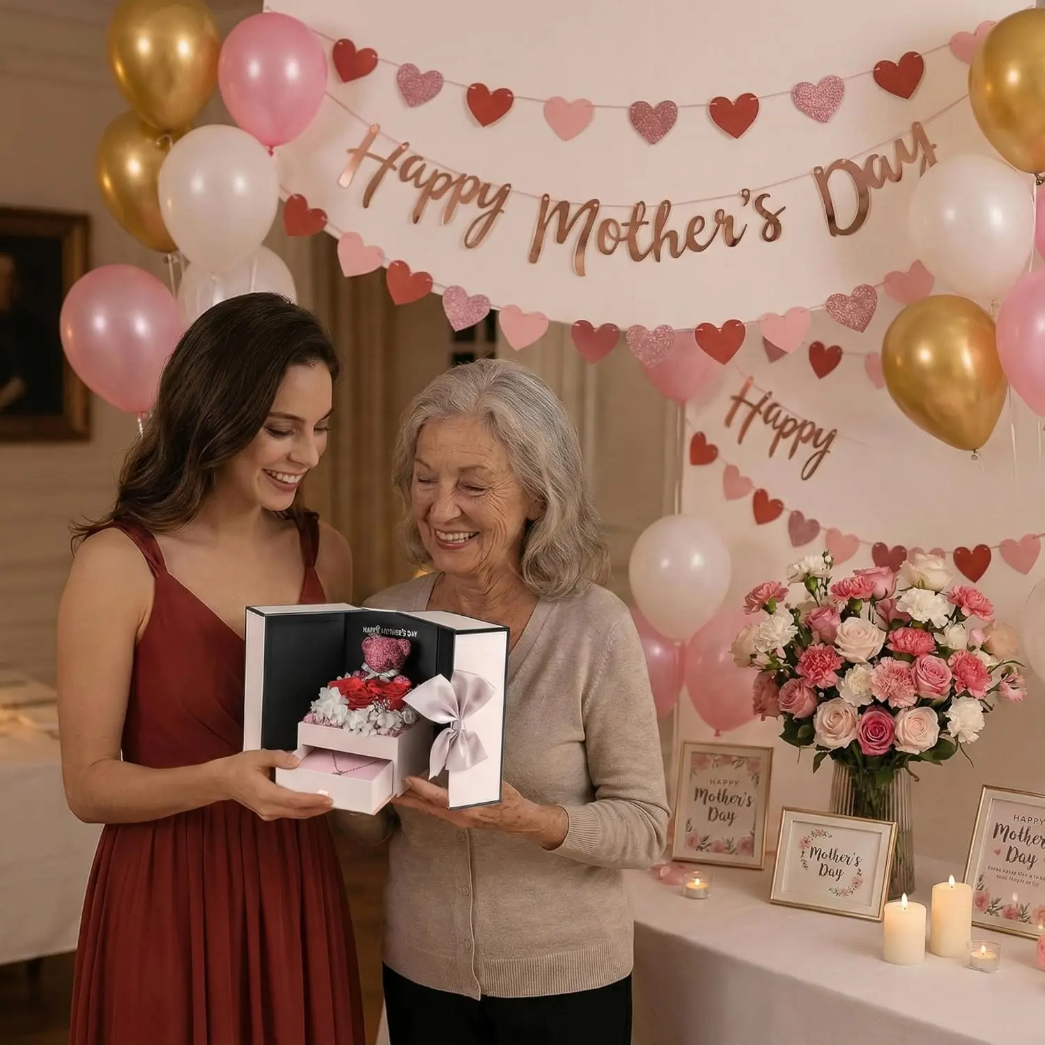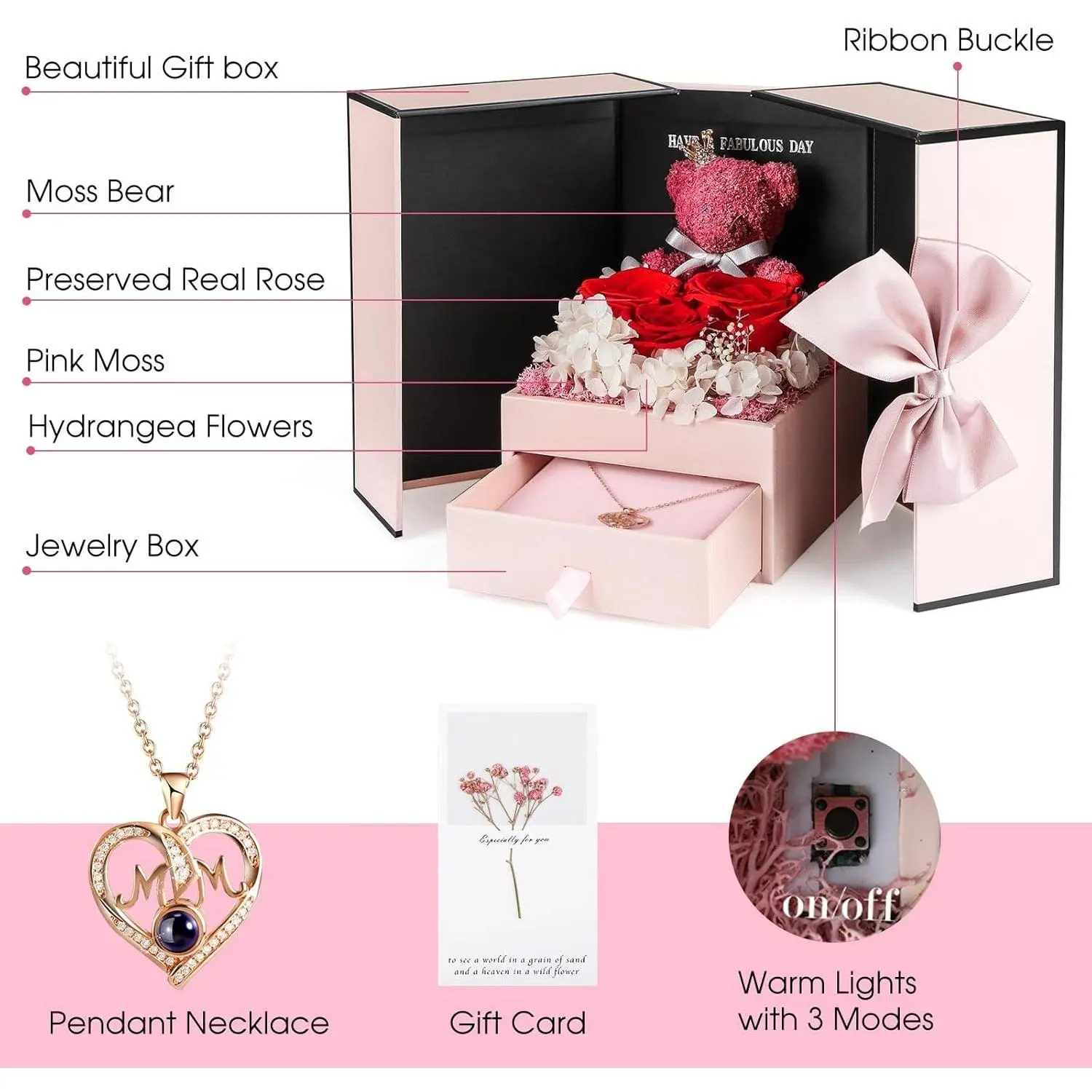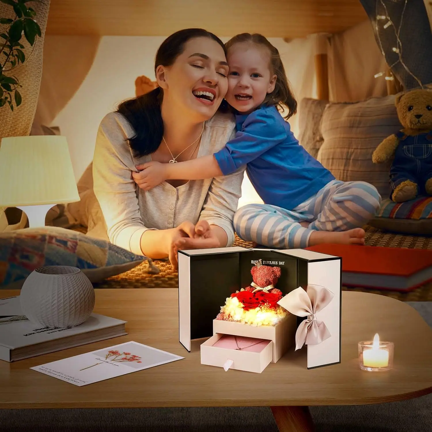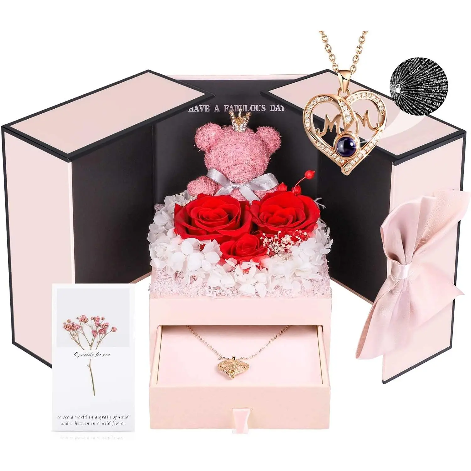 Gifts for Mom from Daughter Son, Preserved Real Red Rose with Cute Bear & I Love You in 100 Languages , Unique Mothers Day, Birthday Gift Box for Mama Mother