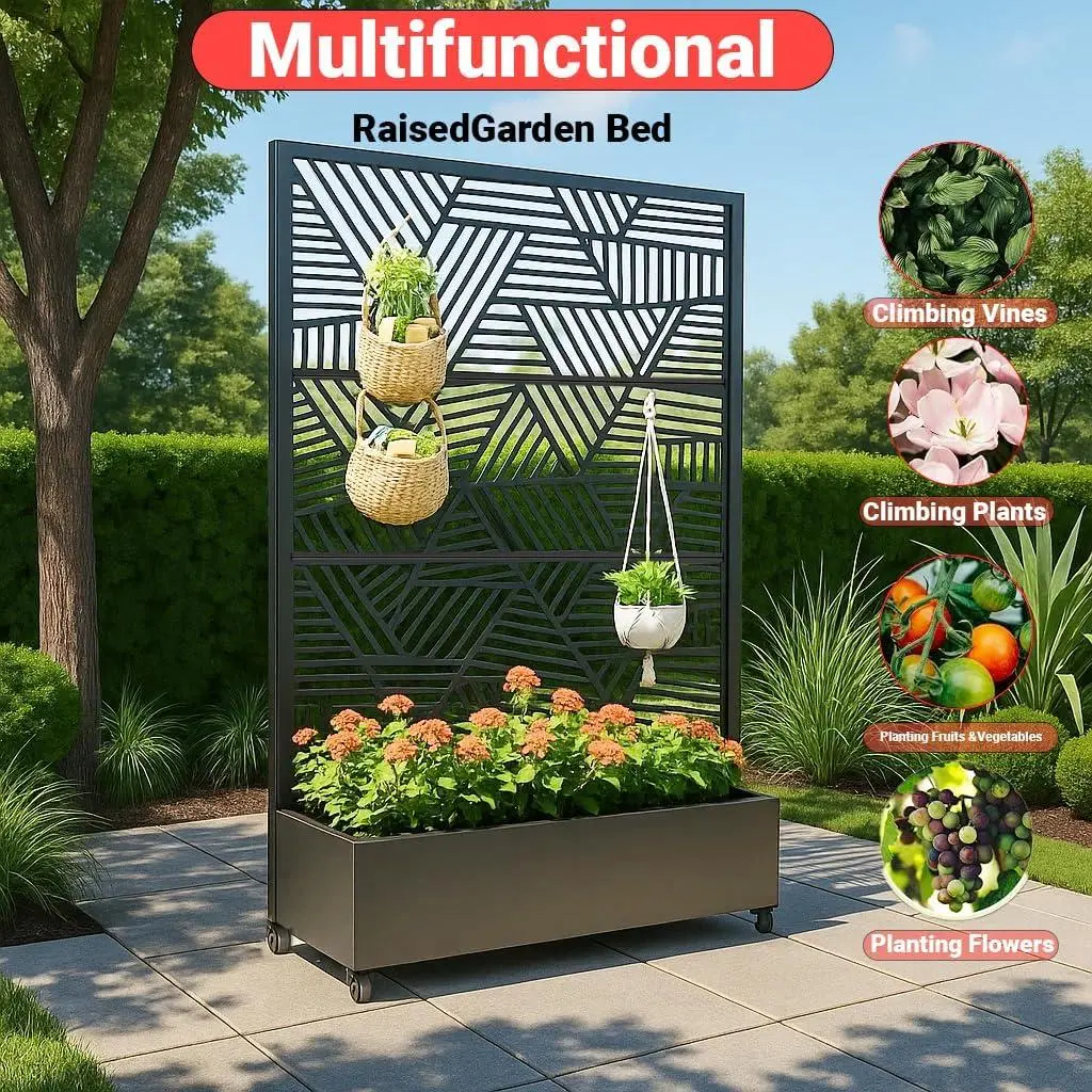 【Rust Resistant Raised Garden Bed】Our planter box is expertly crafted with precision carving technology, featuring detailed edges and intricate geometric patterns that mimic a pyramid design. These outdoor privacy planter are designed to beautify courtyards, ensuring rust resistant, long-lasting durability with minimal maintenance. Perfect for adding both beauty and functionality to your garden or patio décor, this privacy screen is a must-have for outdoor space.