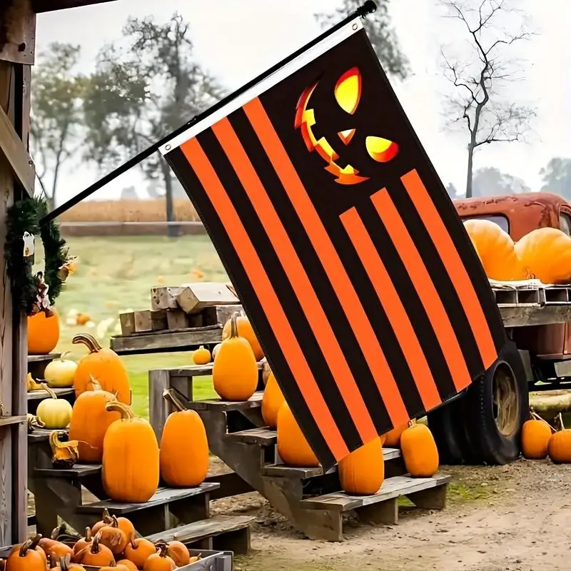 1pc Pumpkin Harvest American Flag Door Banner, Durable Polyester Outdoor Banner with Rivets, Bright Fall Decor for Thanksgiving Halloween & Patriotic Parties