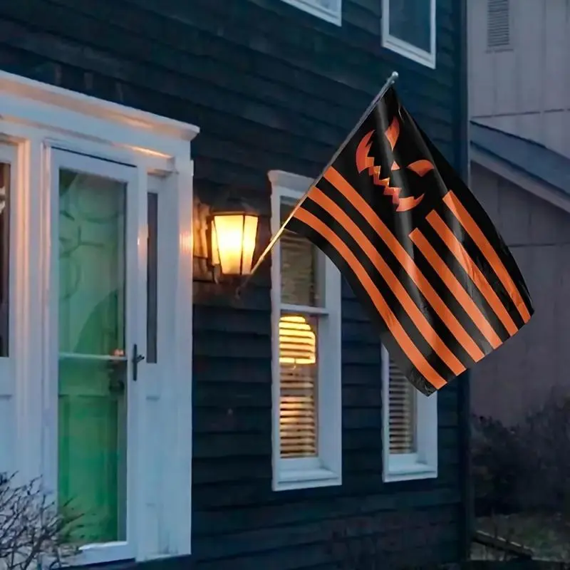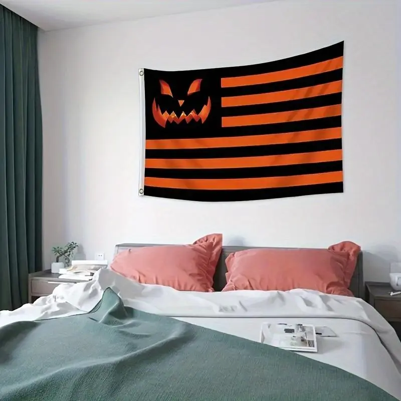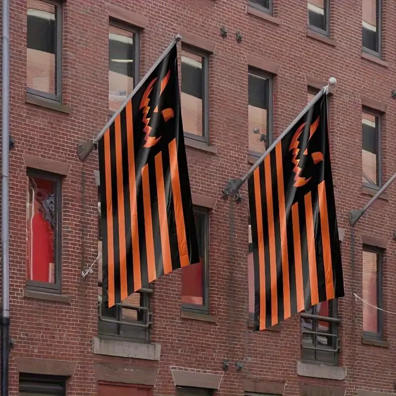 3x5ft Halloween Flag Smiling Jack-O-Lantern, Durable Polyester Outdoor Garden Decor with Metal Grommets for Porch Party, Black Wall Hanging Tapestry
