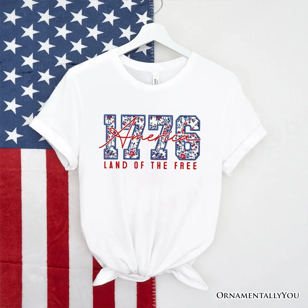 Retro America 1776 Floral T-Shirt, Land of the Free Patriotic Tee.