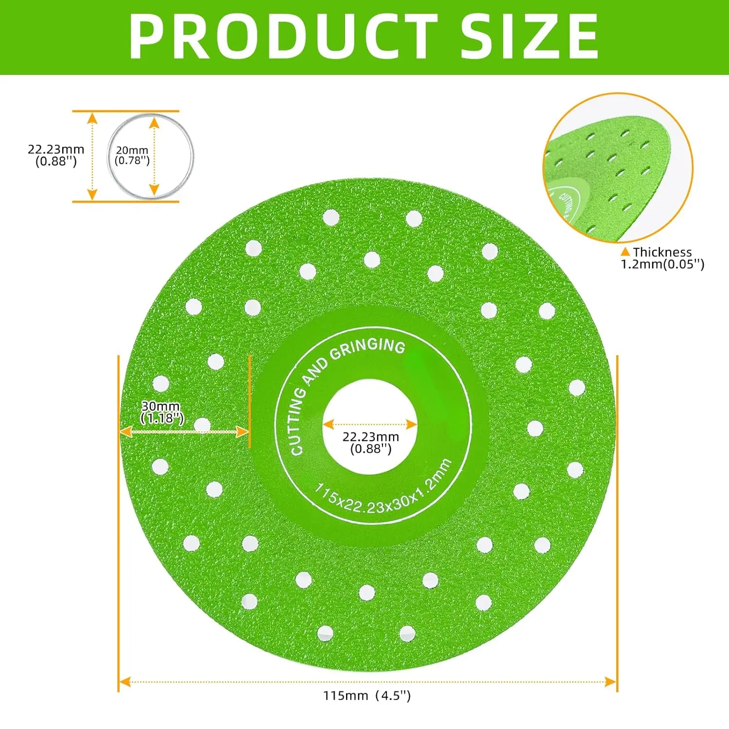 UNIVERSAL ANGLE GRINDER COMPATIBILITY - Designed as the perfect diamond blade for angle grinder, these 4-1/2 inch grinder blades fit most standard models.Easy to install and ideal for both professional contractors and DIY home improvement projects.