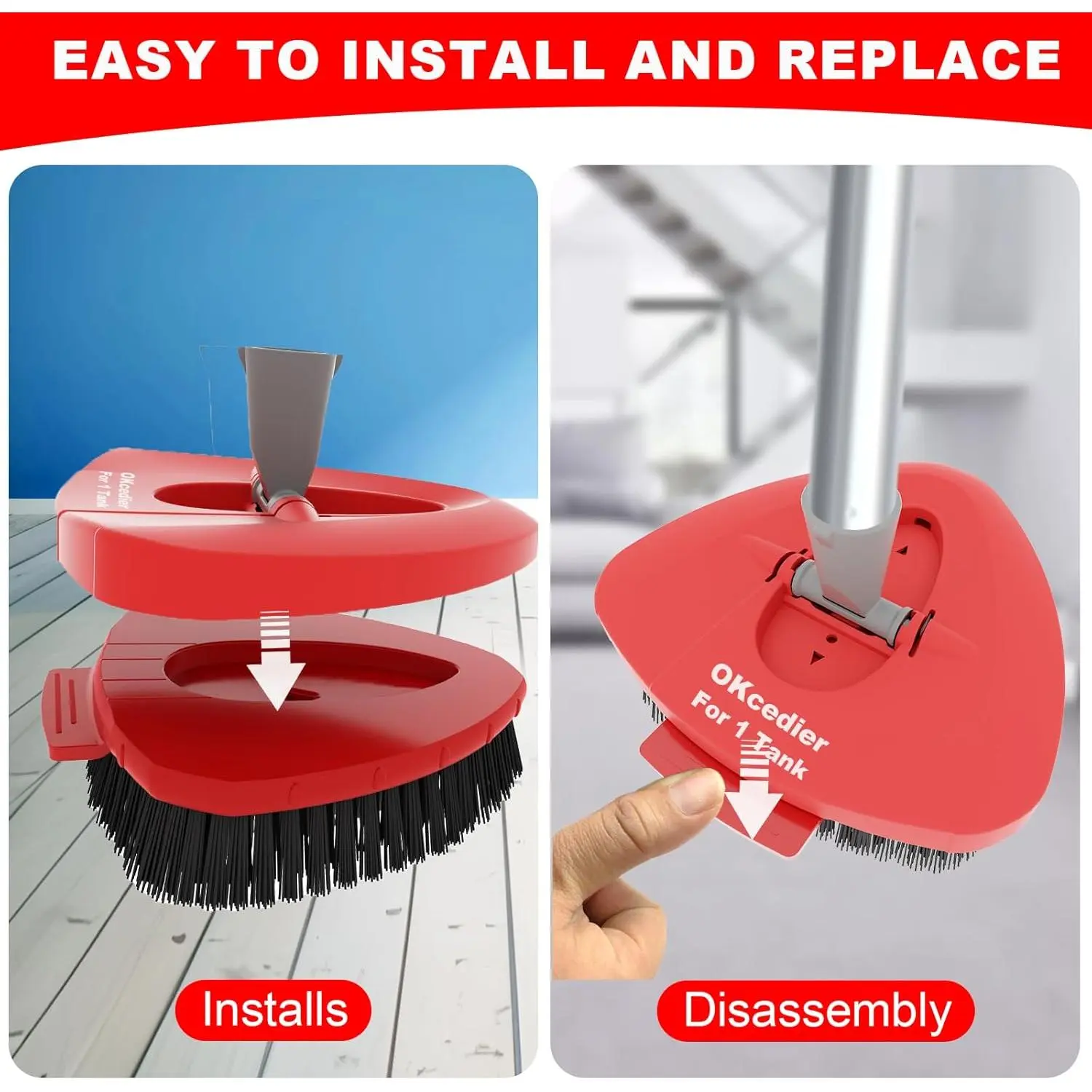 2 Pack Upgrade Scrub Brush Replace Heads Compatible with O Cedar EasyWring 1 Tank Spin Mop,Mop Replacement Scrubber Head Brush,Floor Cleaning Brush,More Layers of Bristles for Bathroom, Deck, Kitchen