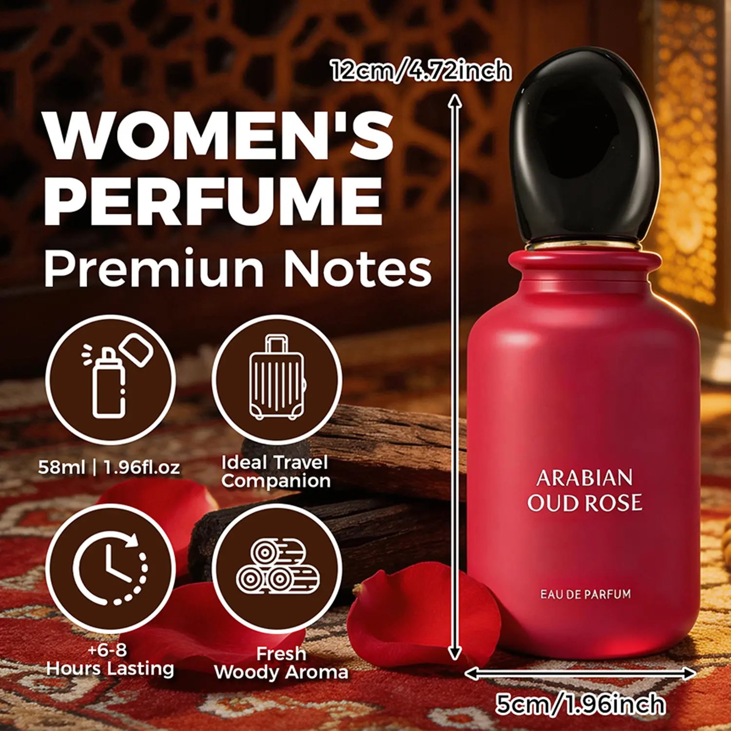 Arabian Oud Rose Eau De Parfum 58ml (1.96 oz) Saffron, Pink Pepper, Damascus Rose, Geranium, Oud, Amber, Leather – Long Lasting Fragrance, Luxury Women Perfume Gift