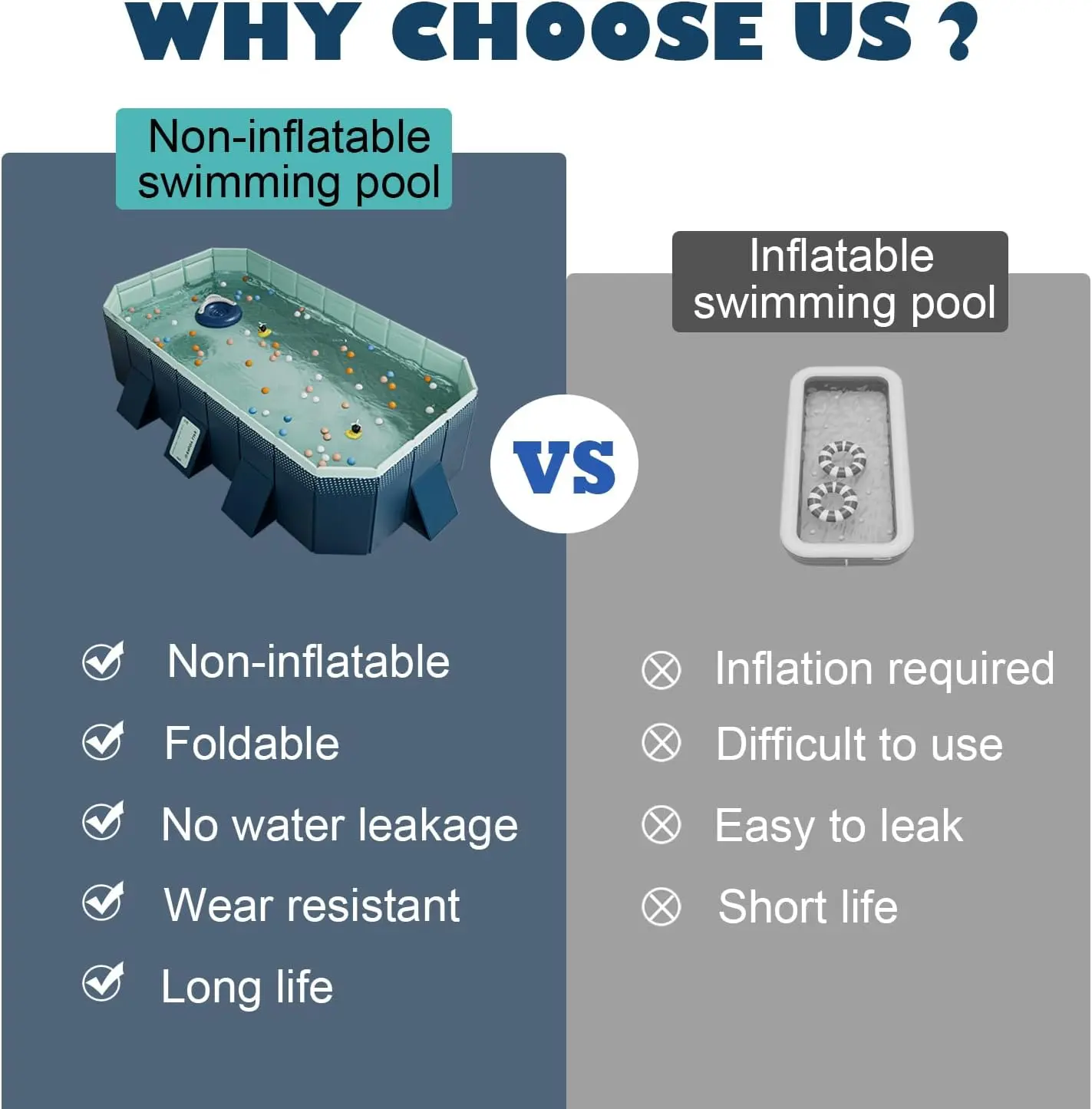 118-inch (approx. 299.7 cm) Foldable Swimming Pool for Adults & KidsNon-inflatable Design with Sturdy Metal FrameReinforced Thick PVC & PP Board SupportExtra Large, Stable & Foldable PoolPerfect for Family, Dogs, Backyard & Outdoor Us