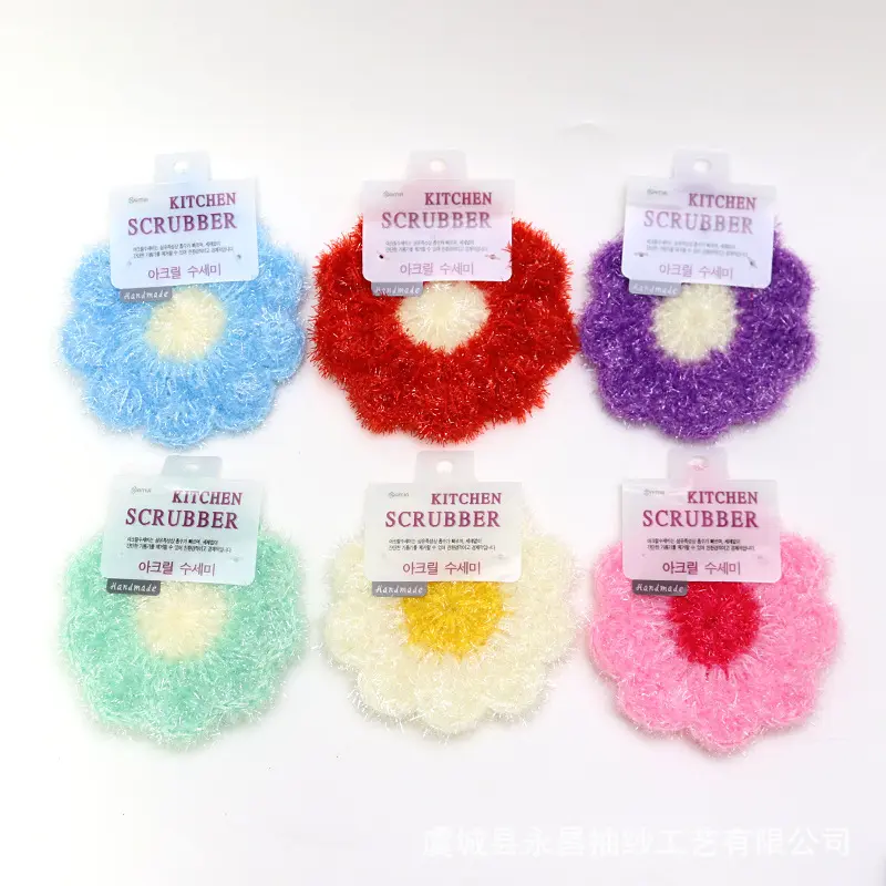 [6-piece set in random colors] Acrylic non-stick oil dishcloth, thickened acrylic flower cleaning cloth in various colors
