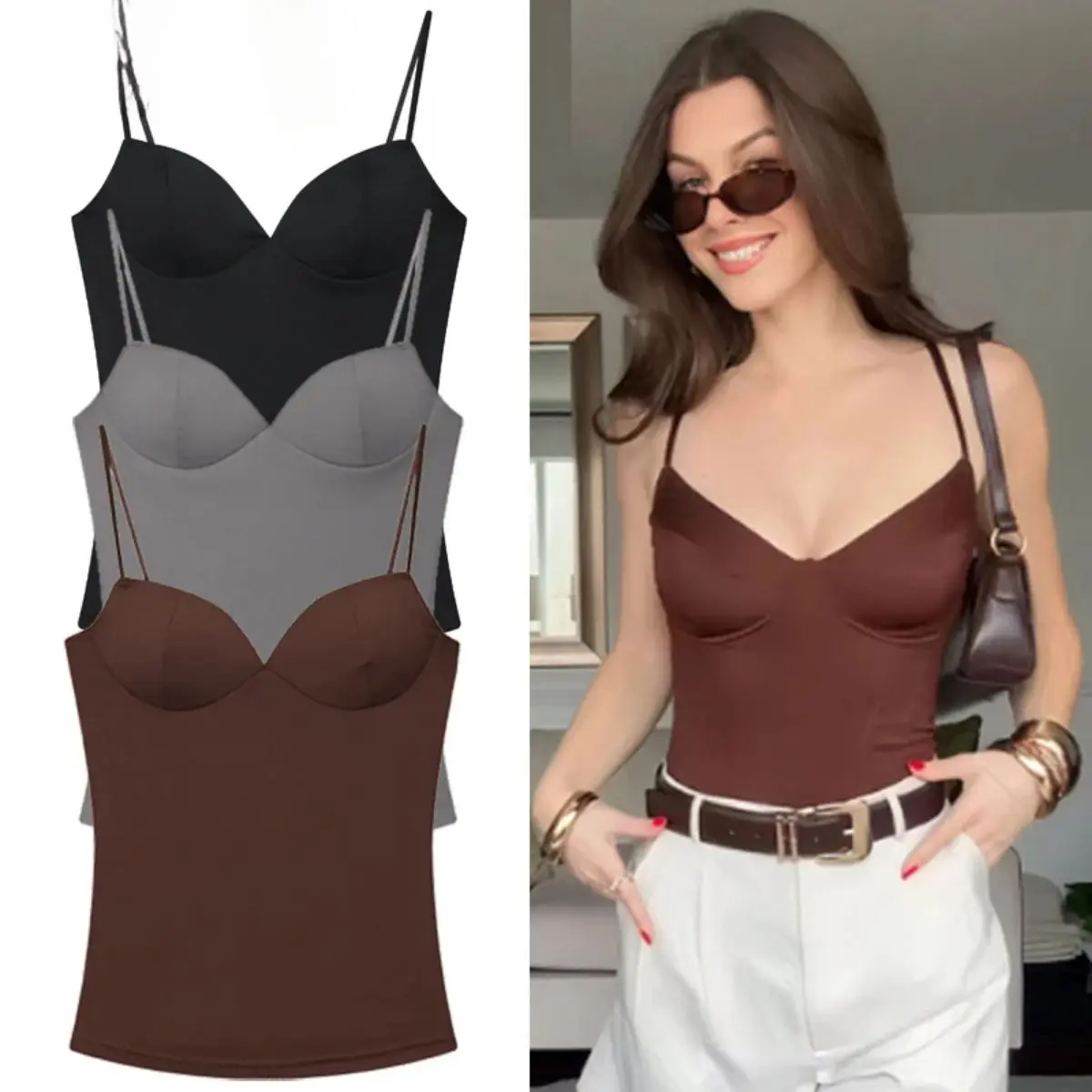 2026 Summer Women's Burgundy Slip Top! Sexy corset design with sleeveless, backless style, showing off your charming curves. Made of soft, breathable fabric, its a fashionable camisole that combines elegance and sexiness. Perfect for summer daily wear, vacation or casual outings, easy to match and full of chic vibes. Lightweight and comfortable, its an essential piece for your summer wardrobe.