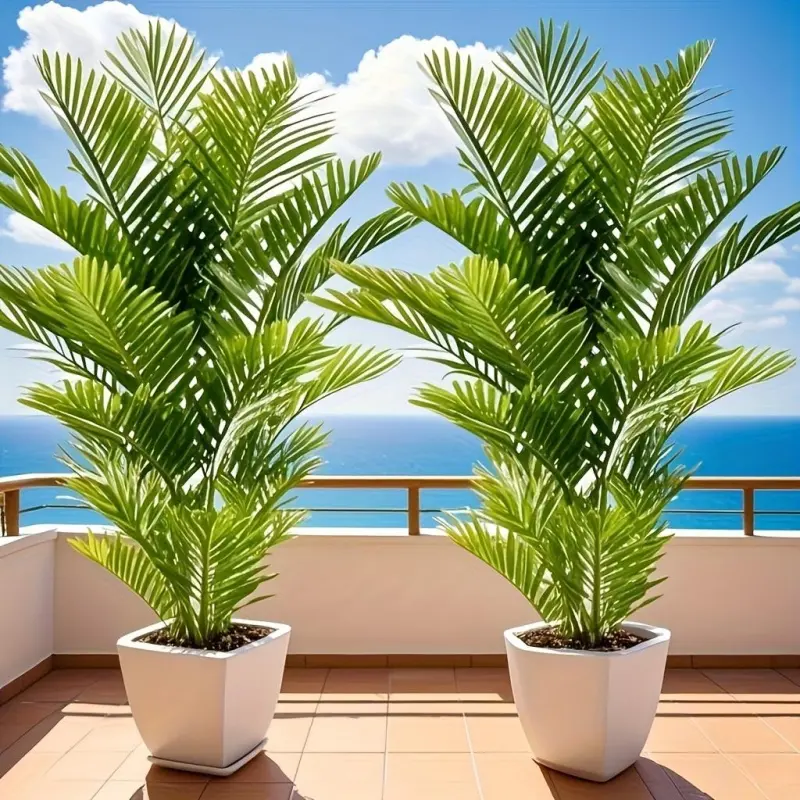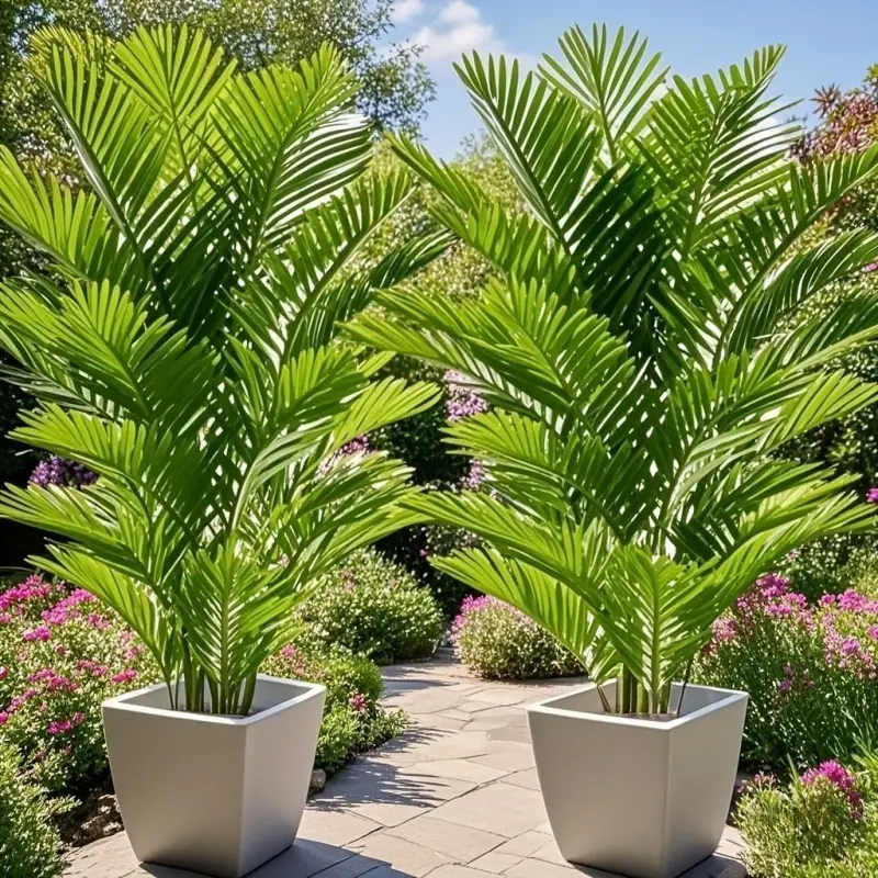Instant Paradise: Lifelike Tropical Palm Duo for Effortless Luxury