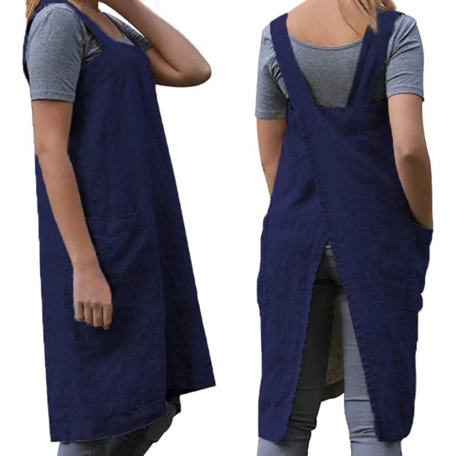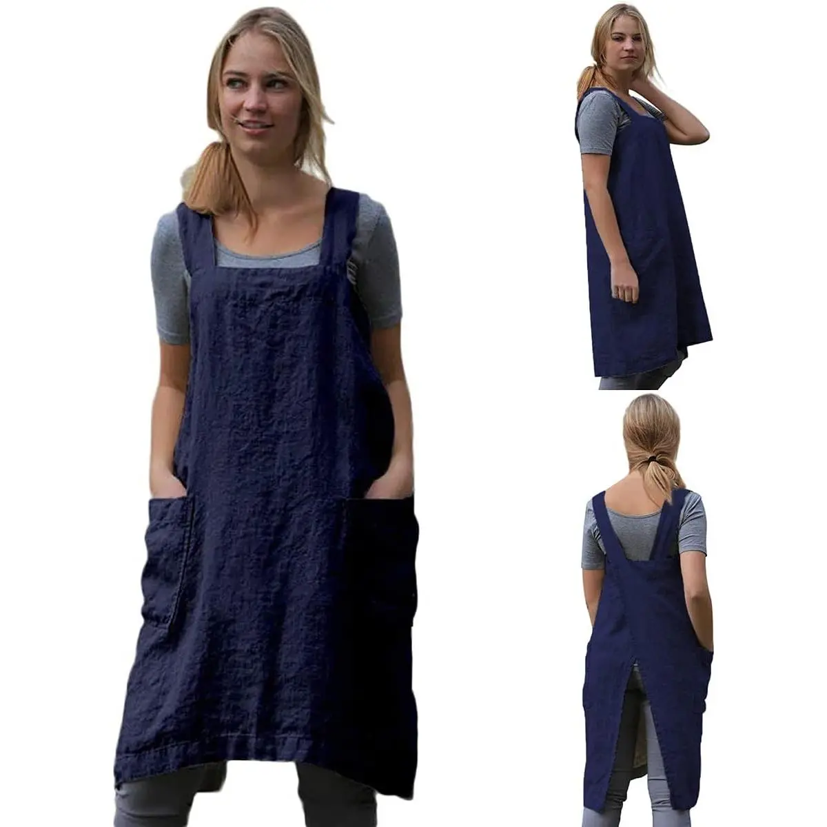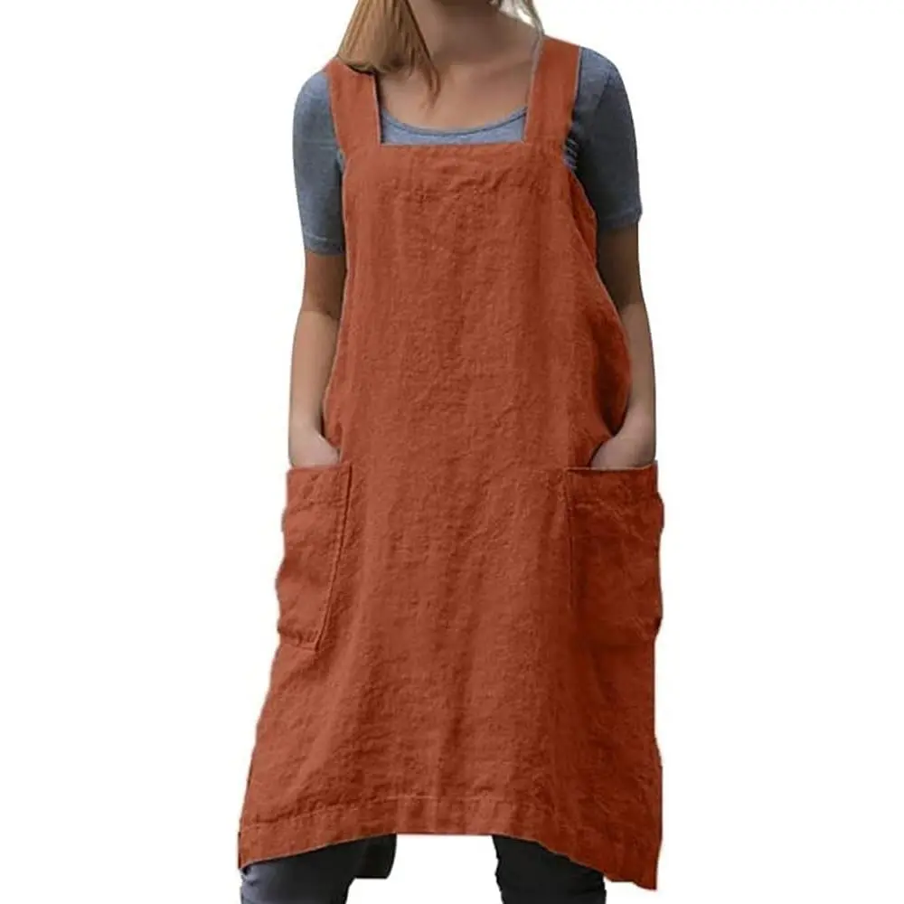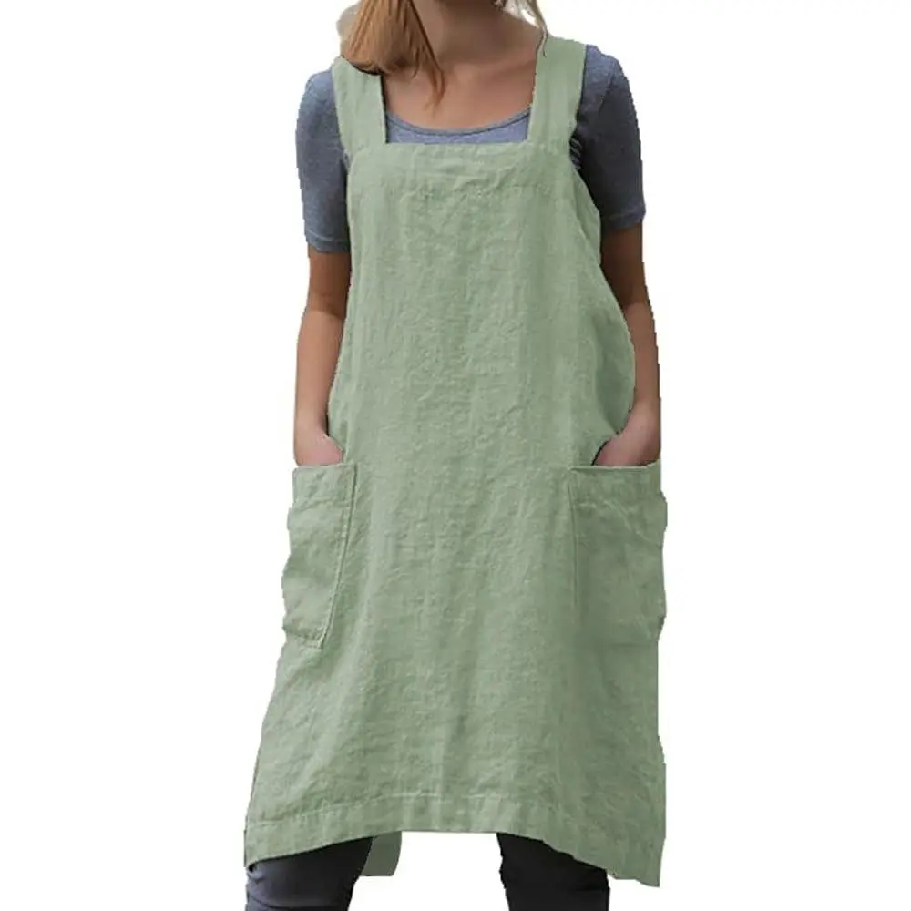 Cotton Linen Apron Cross Back Apron for Women with Pockets Pinafore Dress for Baking Cooking Gardening Work