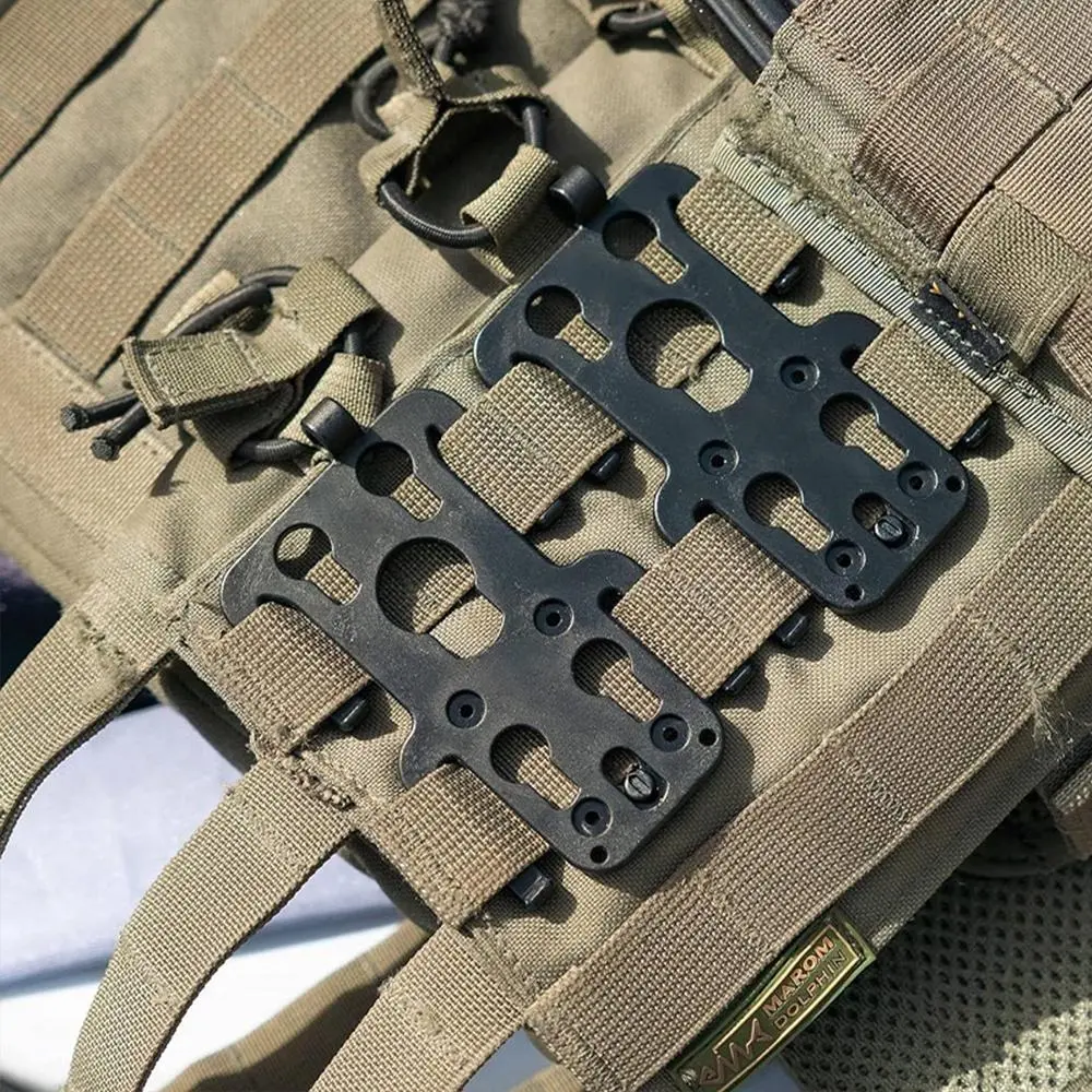 MOLLE Compatibility: Designed to seamlessly integrate with all MOLLE-based pouches and accessories, allowing flexible and organized attachment to tactical vests, backpacks, and equipment platforms..Heavy-Duty Construction: Made from high-strength, impact-resistant plastic in earth yellow for camouflage and durability in rugged outdoor environments..Secure Mounting System: Features four reinforced holes for stable screw or strap-based attachment to various surfaces including vehicles, walls, and gear racks..Ventilation Design: Incorporated ventilation slots reduce overall weight and improve air circulation to prevent moisture buildup and equipment overheating..Versatile Application: Ideal for mounting tools, medical kits, communication devices, and other essentials during outdoor adventures, training exercises, and tactical operations.