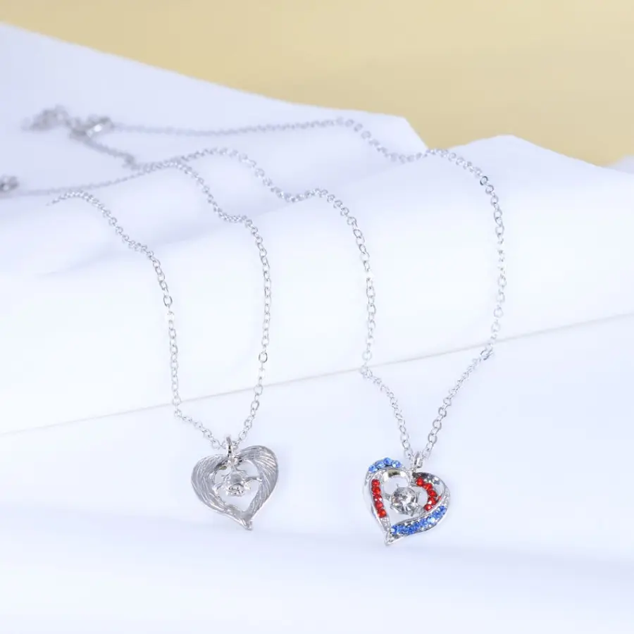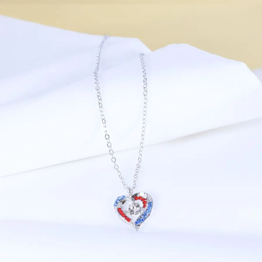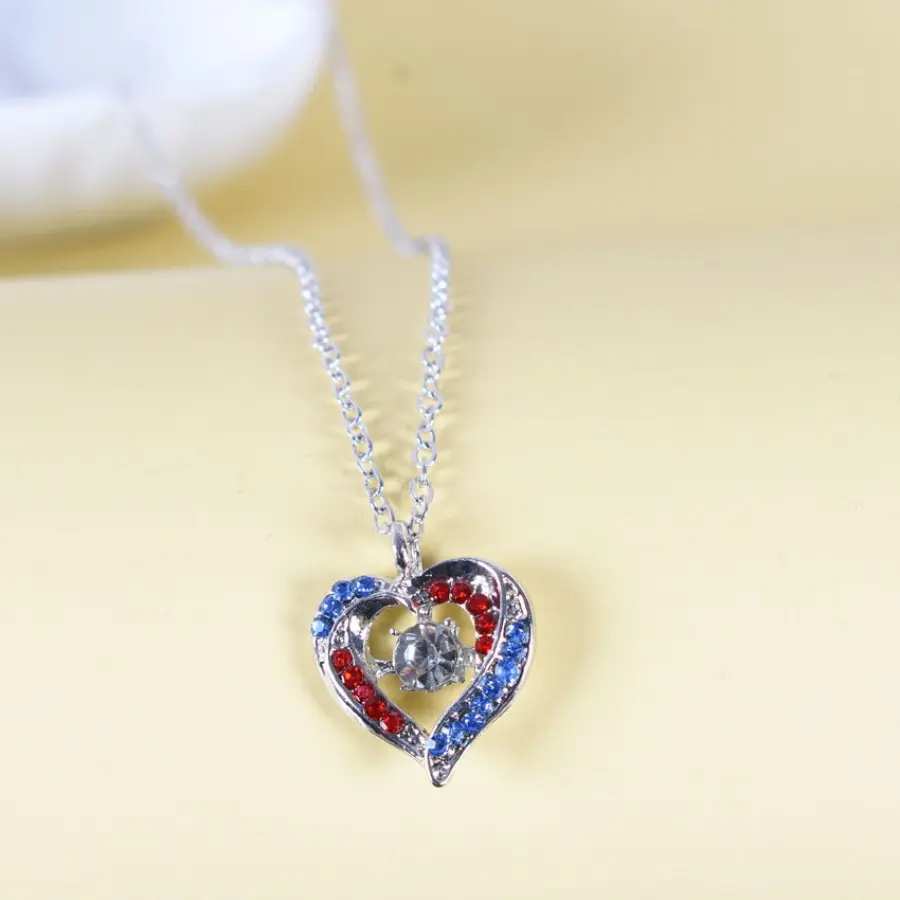 Independence Day Heart Diamond Pendant Fashion Necklace