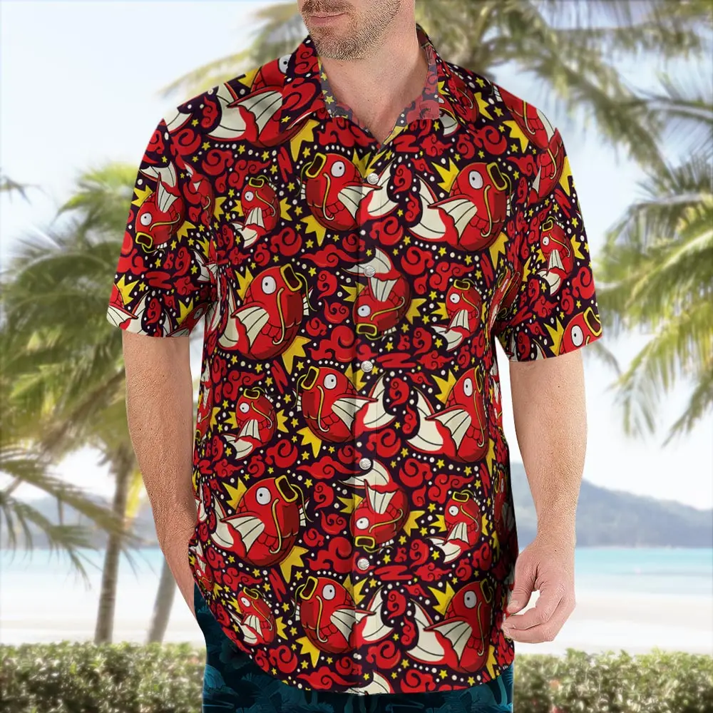 2026 Hot Hawaiian Sets PKM [FREESHIP] Fresh Summer – Youthful – Bold with the Tropi PKM Magikarp Button Up Red Hawaiian Shirt