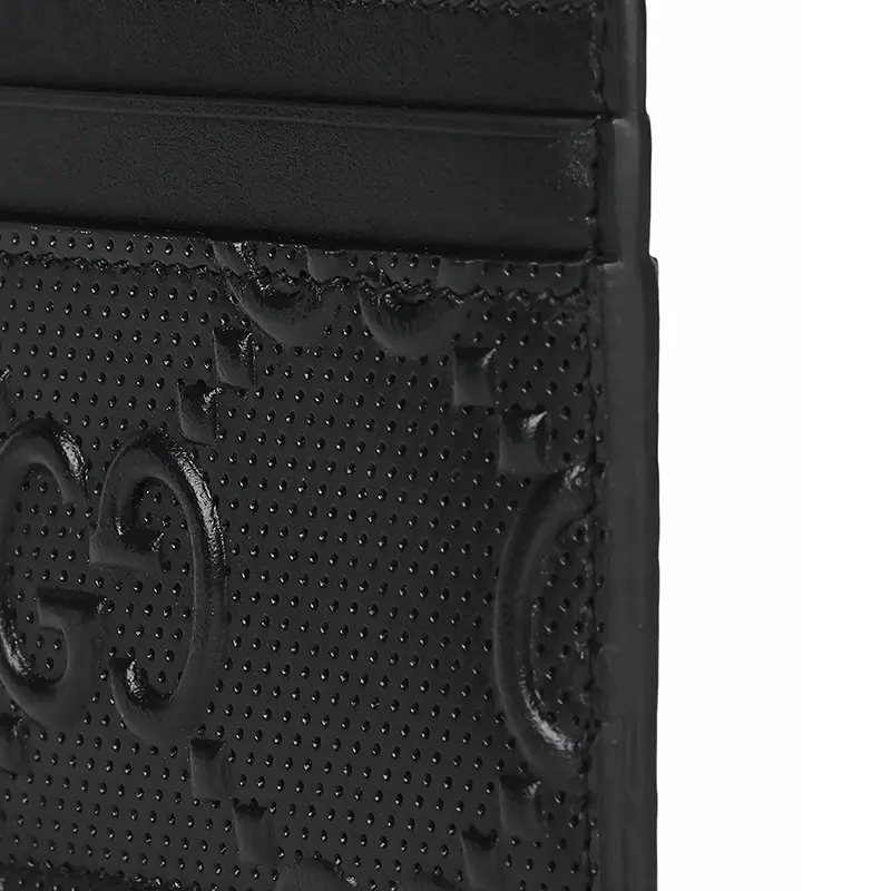 ·Precision-embossed GG logo on premium black calfskin