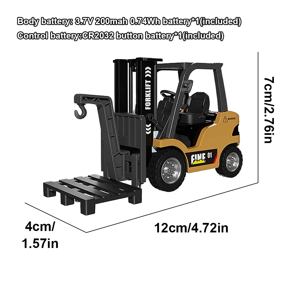 1/64 Alloy Forklift Truck Toy, Mini Remote Control Forklift Truck RC Construction Truck with Rechargeable Battery, 2 in 1 Lift Fork & Hook with Lights & Sounds for Adults Kids Boys Girls Christmas Birthday Gifts