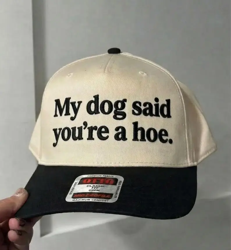 My Dog Said You're A Hoe Hat Cream Black Embroidered Trucker Funny Pet Fan Gear