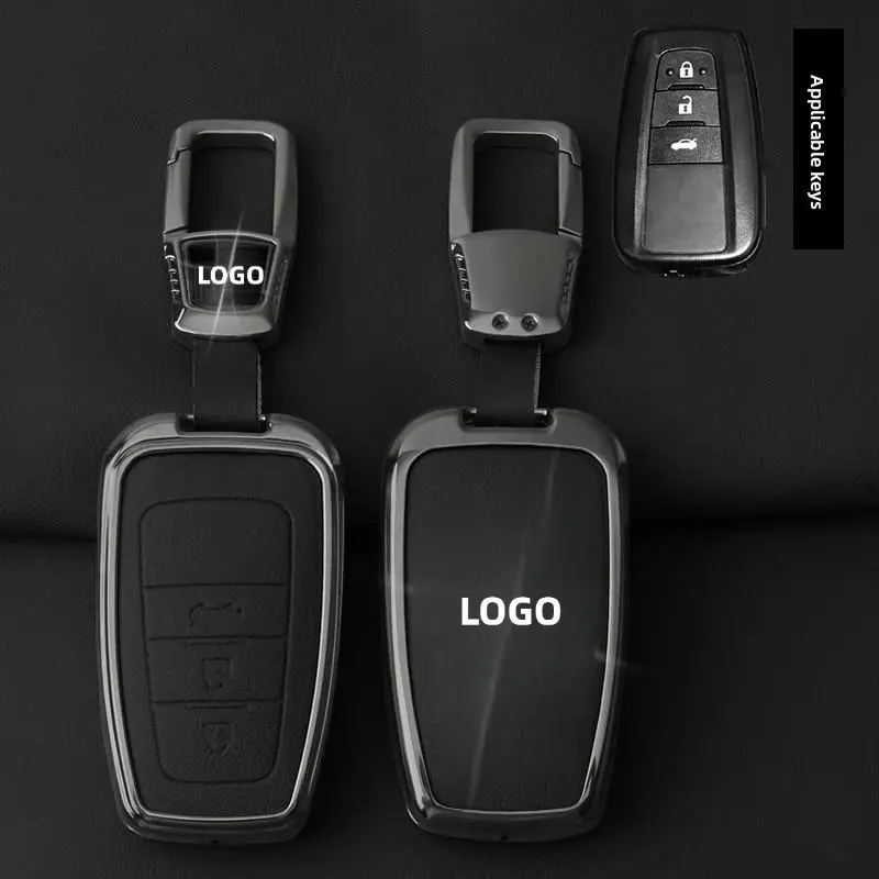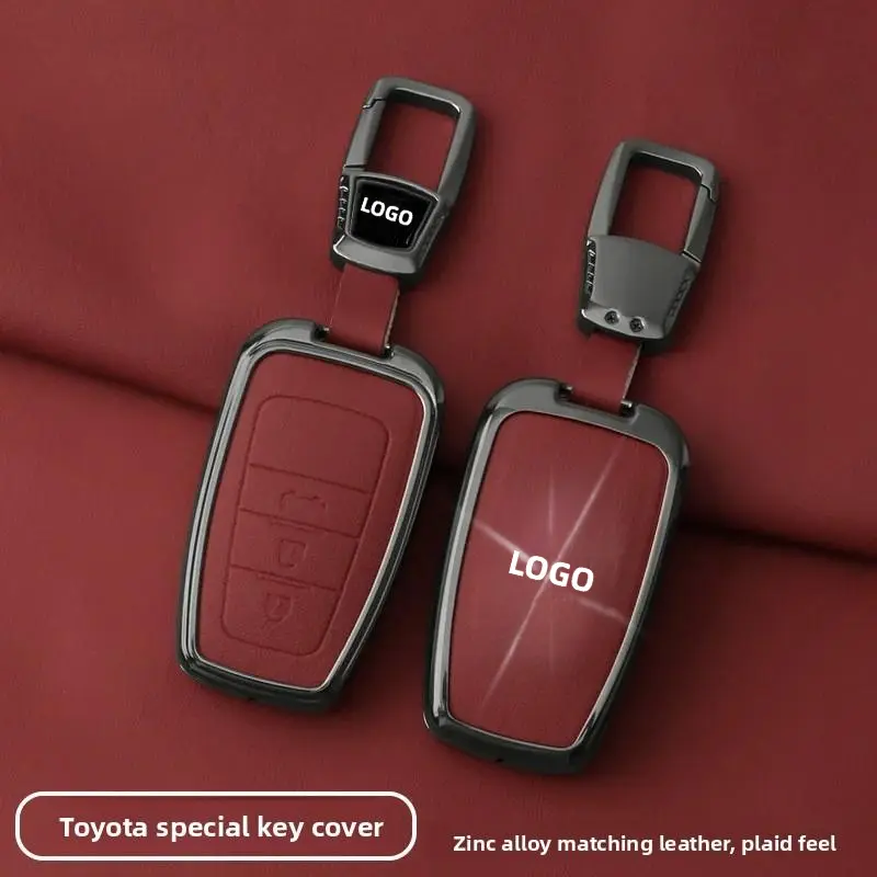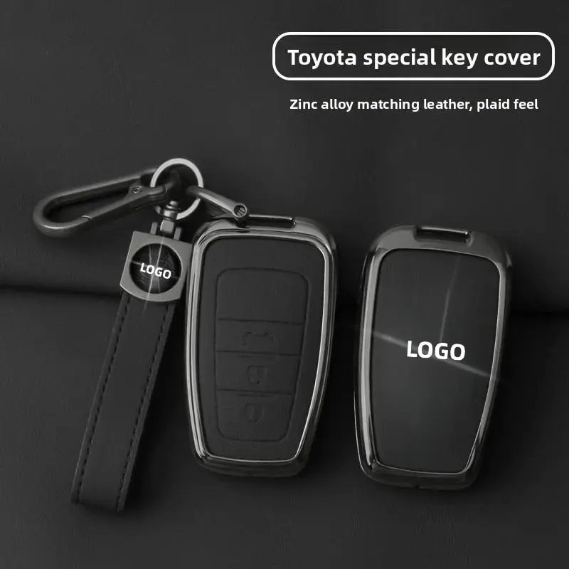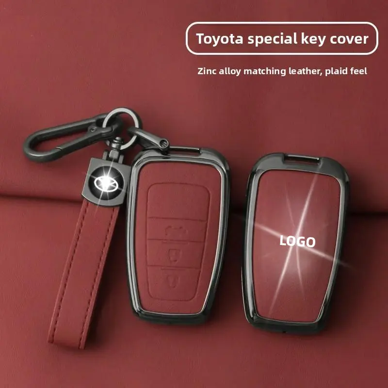 Toyota Car Key Fob Shell Case Zinc Alloy Leather for CHR Camry Corolla RAV4 Highlander C-HR Prius Land Cruiser Prado Keychain Accessories Gift for Men Family