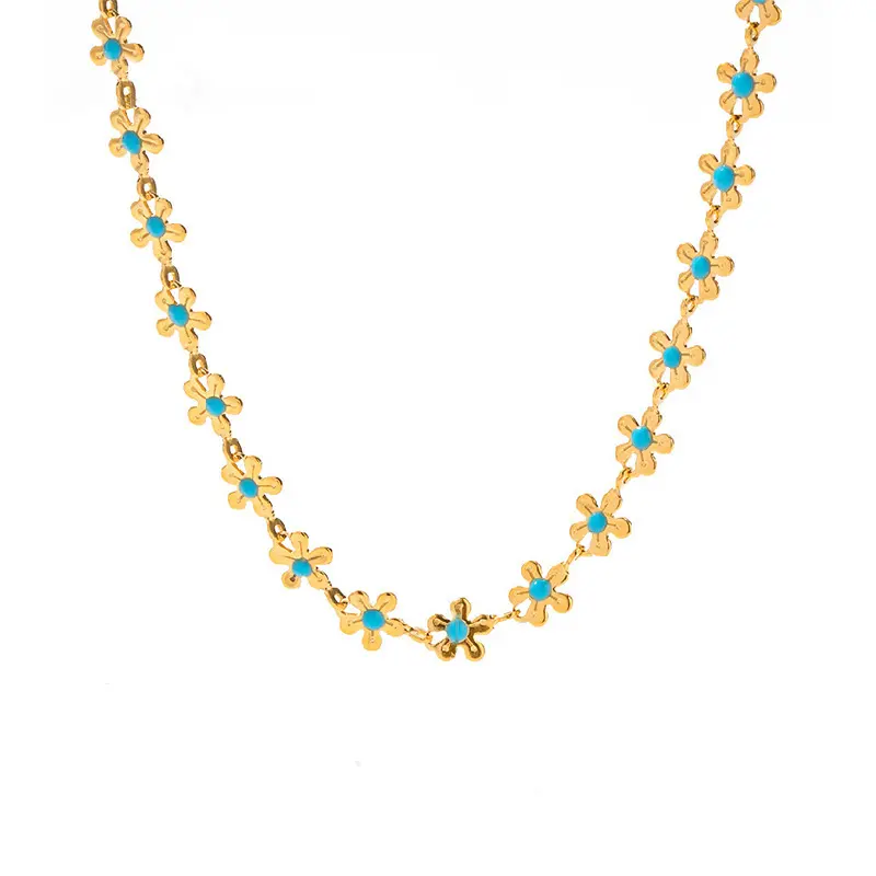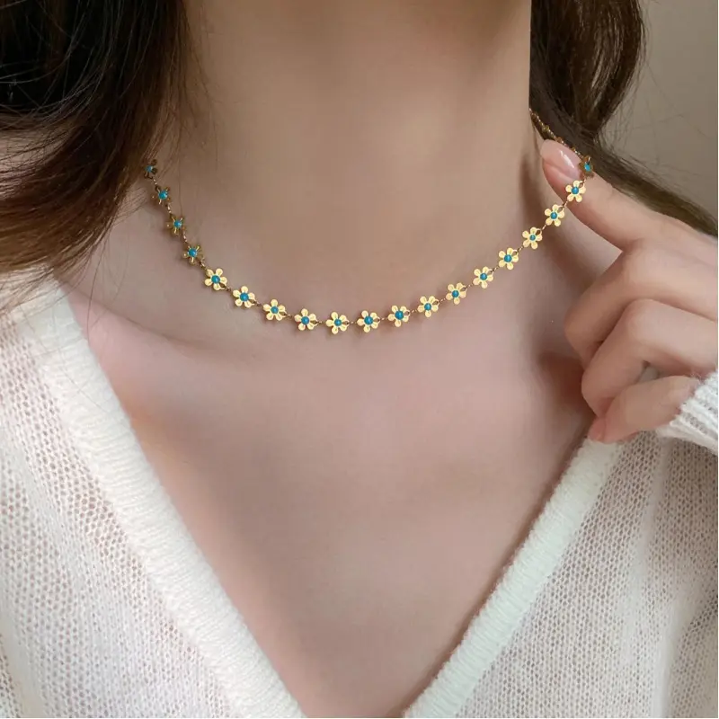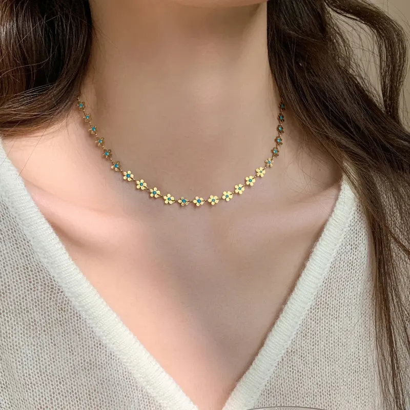 Blue Enamel Flower Necklace Set for Women – Light Luxury Elegant Floral Double-Sided Collarbone Chains – Stylish Layered JewelryBlue Enamel Flower Necklace Set for Women – Light Luxury Elegant Floral Double-Sided Collarbone Chains – Stylish Layered Jewelry