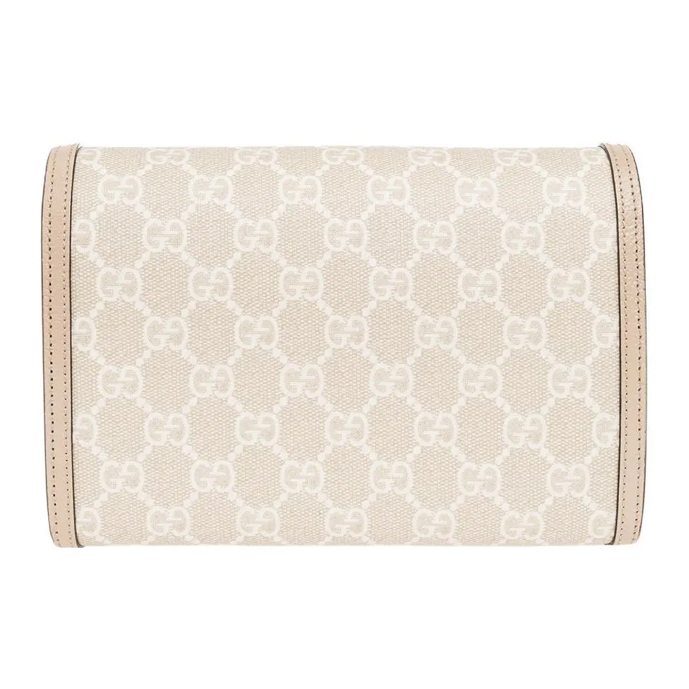 Materials: GG Supreme canvas (recycled polyester base with polyurethane coating), smooth beige calfskin leather trim, antique-finish brass hardware, cotton canvas lining.