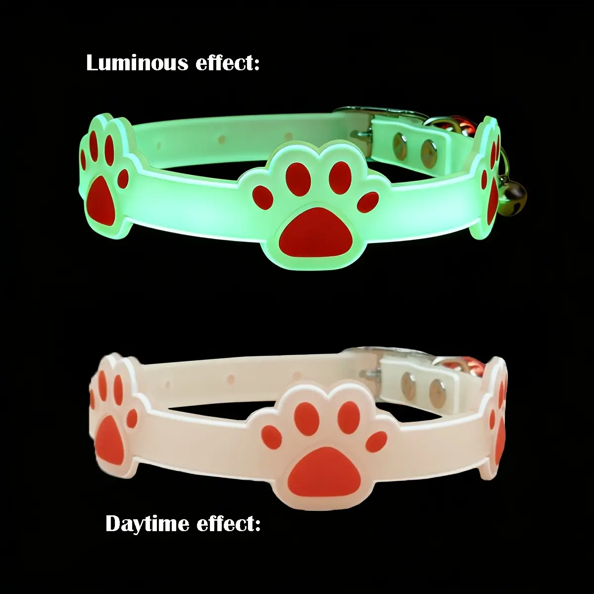 1pc Glowing Collar for Dogs & Cats with Bell - Luminous Night Safety Collar, Adjustable Anti-Loss Safety Device, Paw Print Suitable for Small Pets, Bell Alert System for Nighttime Walks, Random Color Collar for Dog and Cat Leash Gear