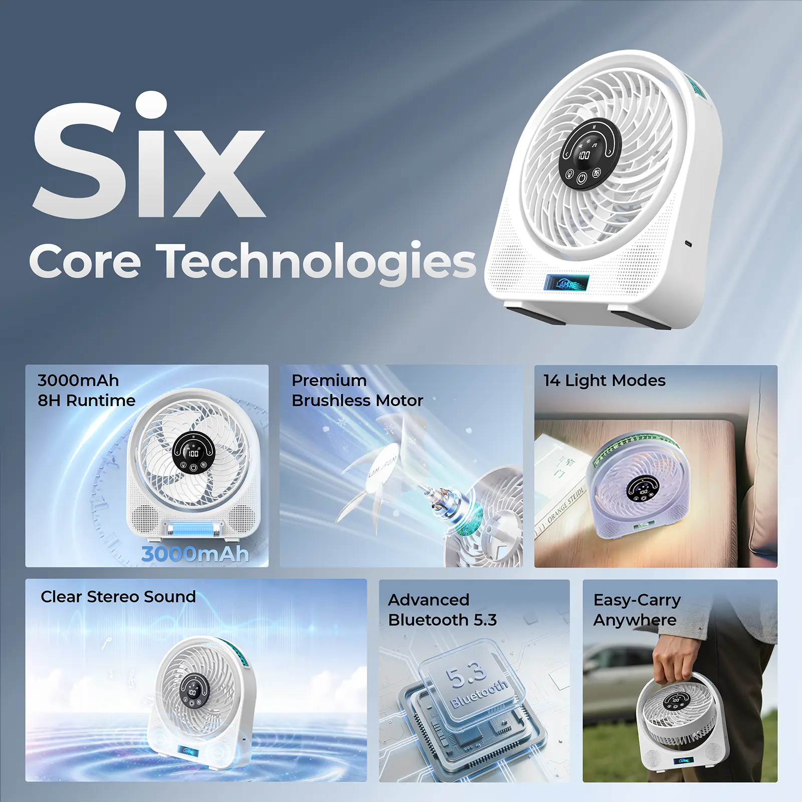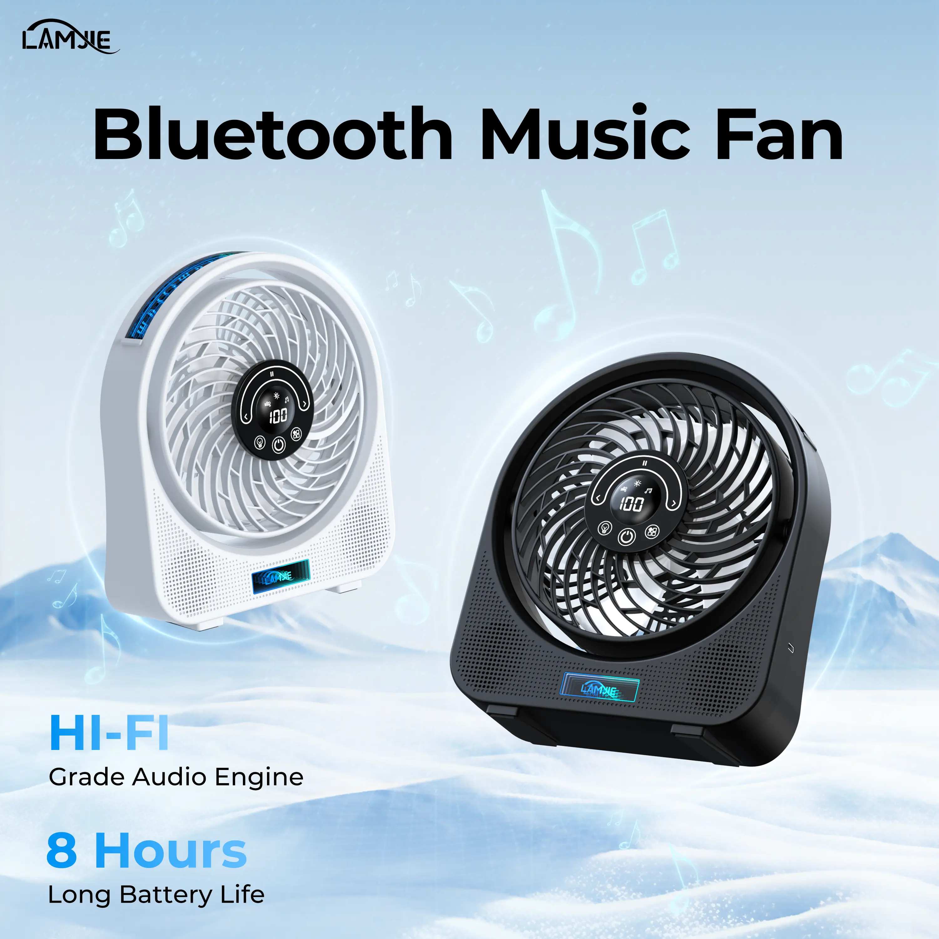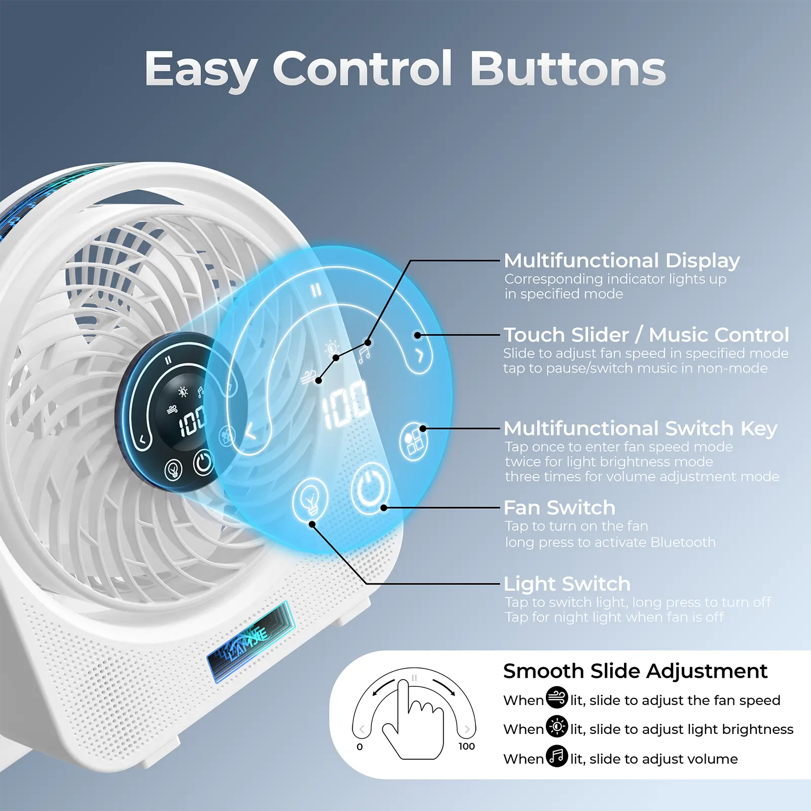 LAMJIE 2-in-1 Portable Fan & Bluetooth Speaker | 14 RGB Light Modes, 25dB Quiet & 12H Runtime | For Gaming, Office & Camping