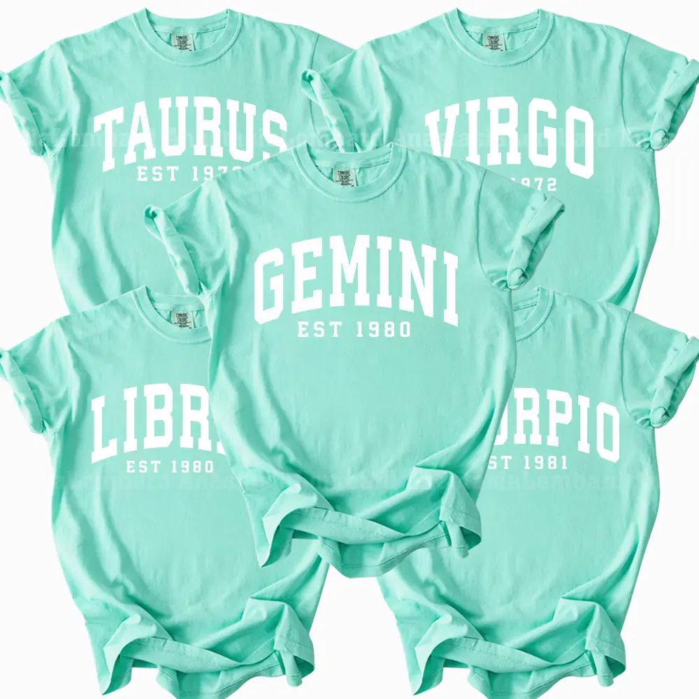 Comfort Colors Astrology Zodiac Shirt, 12 Horoscope Signs Tee, Custom Birth Year EST T-Shirt, Aries Taurus Gemini Virgo Libra Scorpio Aquarius Pisces Gift, Trendy Aesthetic Casual Wear, Chalky Mint Color