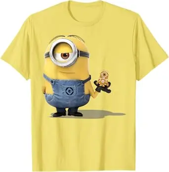 5. Despicable Me Cute Yellow Character Graphic Stuart With Cookie Funny Graphic T-Shirt #Minions #DespicableMe #CartoonTee #FunnyTShirt #GraphicTee