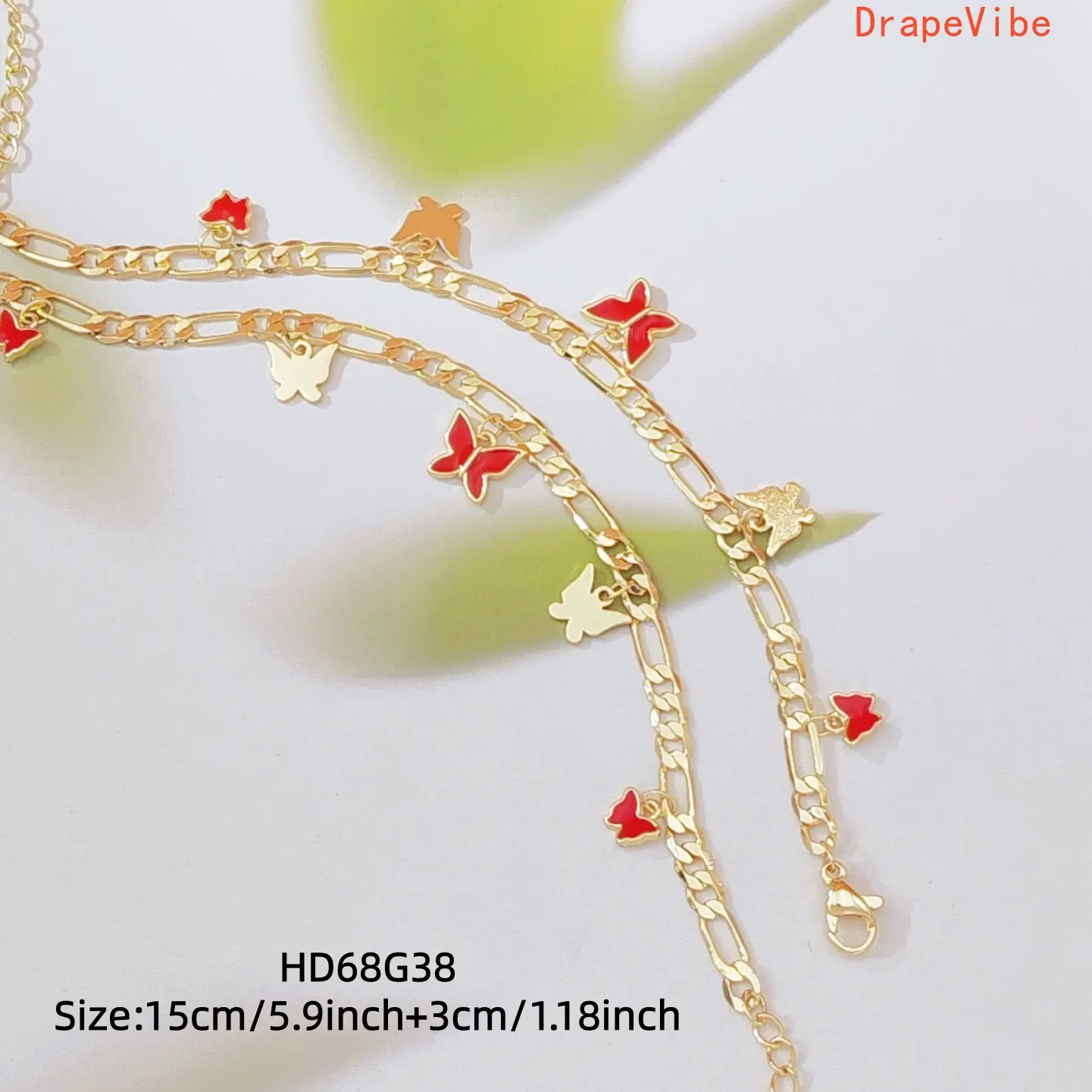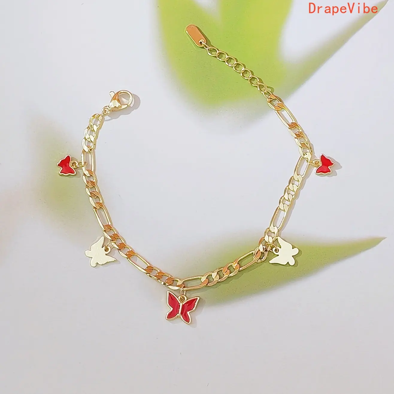 Korean Style Minimalist Luxury Bracelet For Women Red Enamel Butterfly Pendant Elegant Daily Wear Jewelry