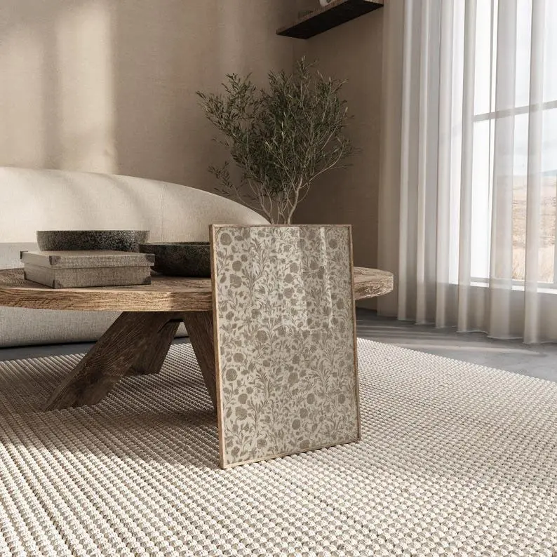 Rustic Vintage Floral Print  Antique Beige Brown Farmhouse Pattern Wall Art1 - (Unframe)