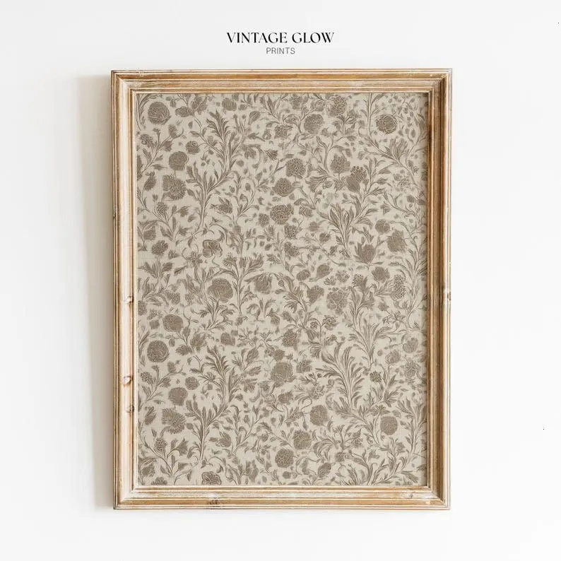 5. Rustic Vintage Floral Print Antique Beige Brown Farmhouse Pattern Wall Art1 - (Unframe)