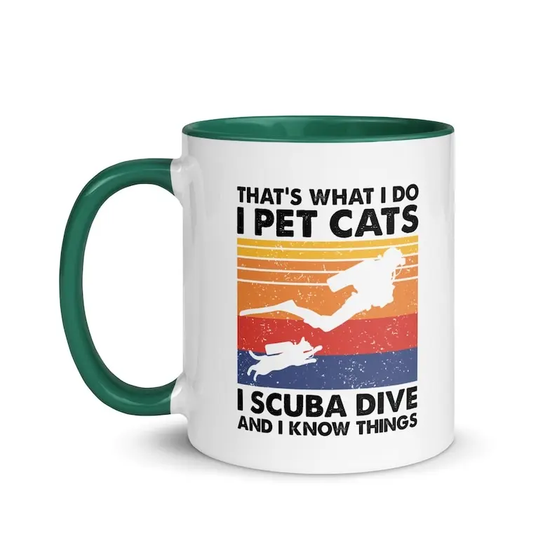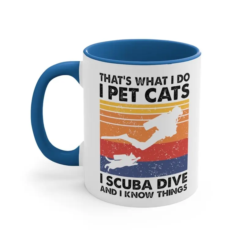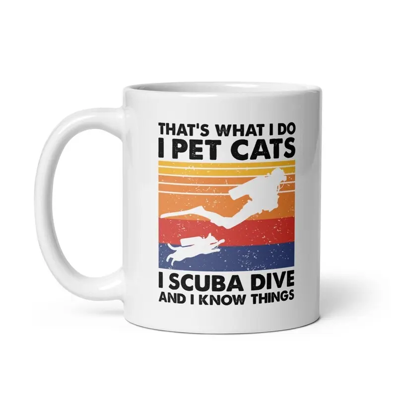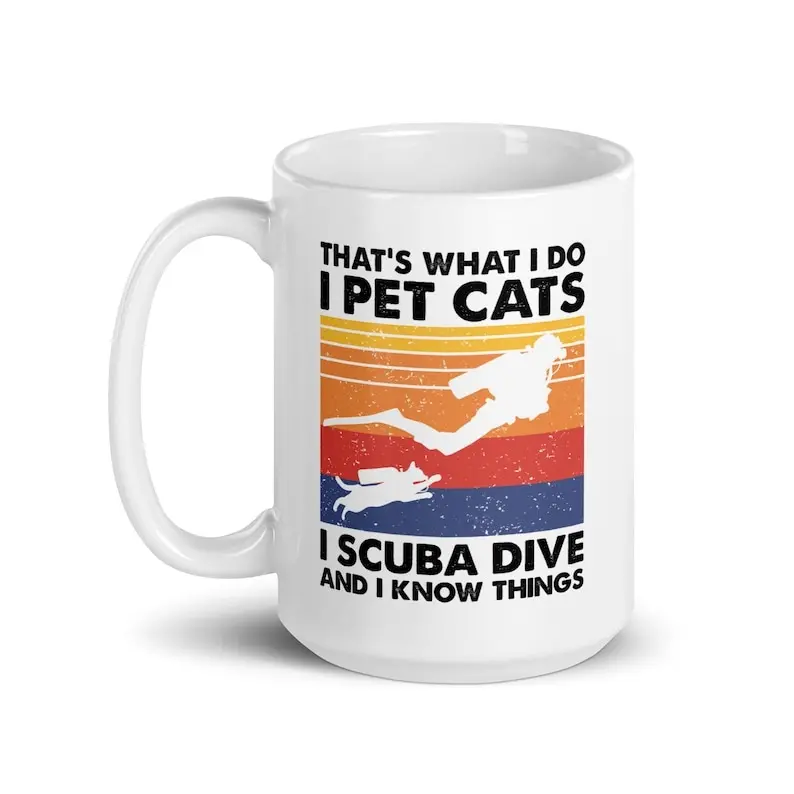 Funny Scuba Diving Cat Lover Coffee Mug 11 Oz Ceramic Tea Cup, Hilarious Gift for Divers, Marine Enthusiasts and Cat Owners, Novelty Birthday Appreciation Christmas Gift for Ocean and Feline Lovers