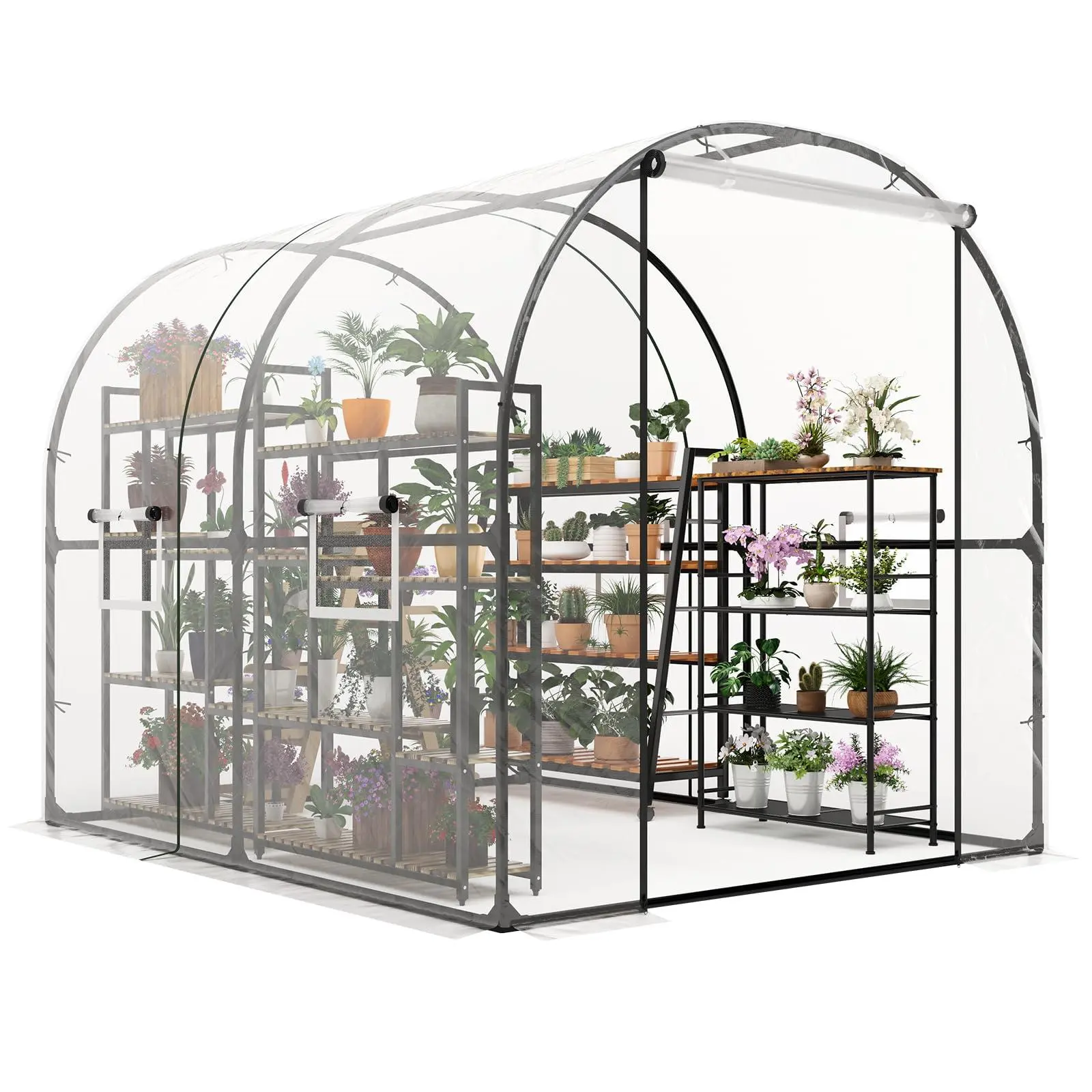 SPACIOUS WALK-IN DESIGNGenerous 8.2 ft x 6.6 ft x 6.6 ft dimensions of outdoor greenhouse provide ample room for walking, working, and cultivating various plants. The comfortable stand-up height and wide footprint make gardening accessible and enjoyable for adults of all heights.