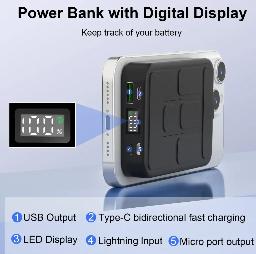 Magnetic Portable Wireless Fast Charger, 10000mAh Power Bank Wireless Battery Pack, 22.5 W PD Quick Charge with LED Display, Compatible with iPhone Series #GLOBAL PICKS