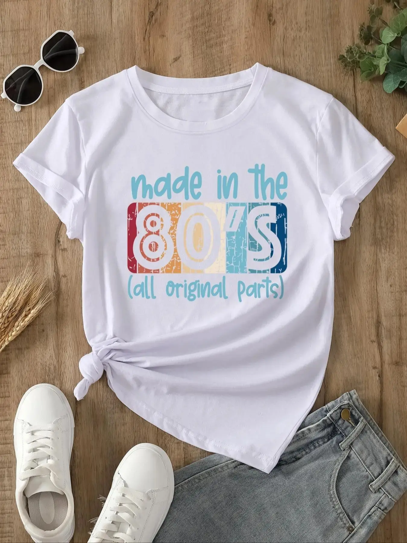 5. Women's Letter & Figure Print Round Neck Tee, Lady Summer Clothes Women Short Sleeve Crew Neck T-Shirt for Daily Wear, Casual Summer Top for Women