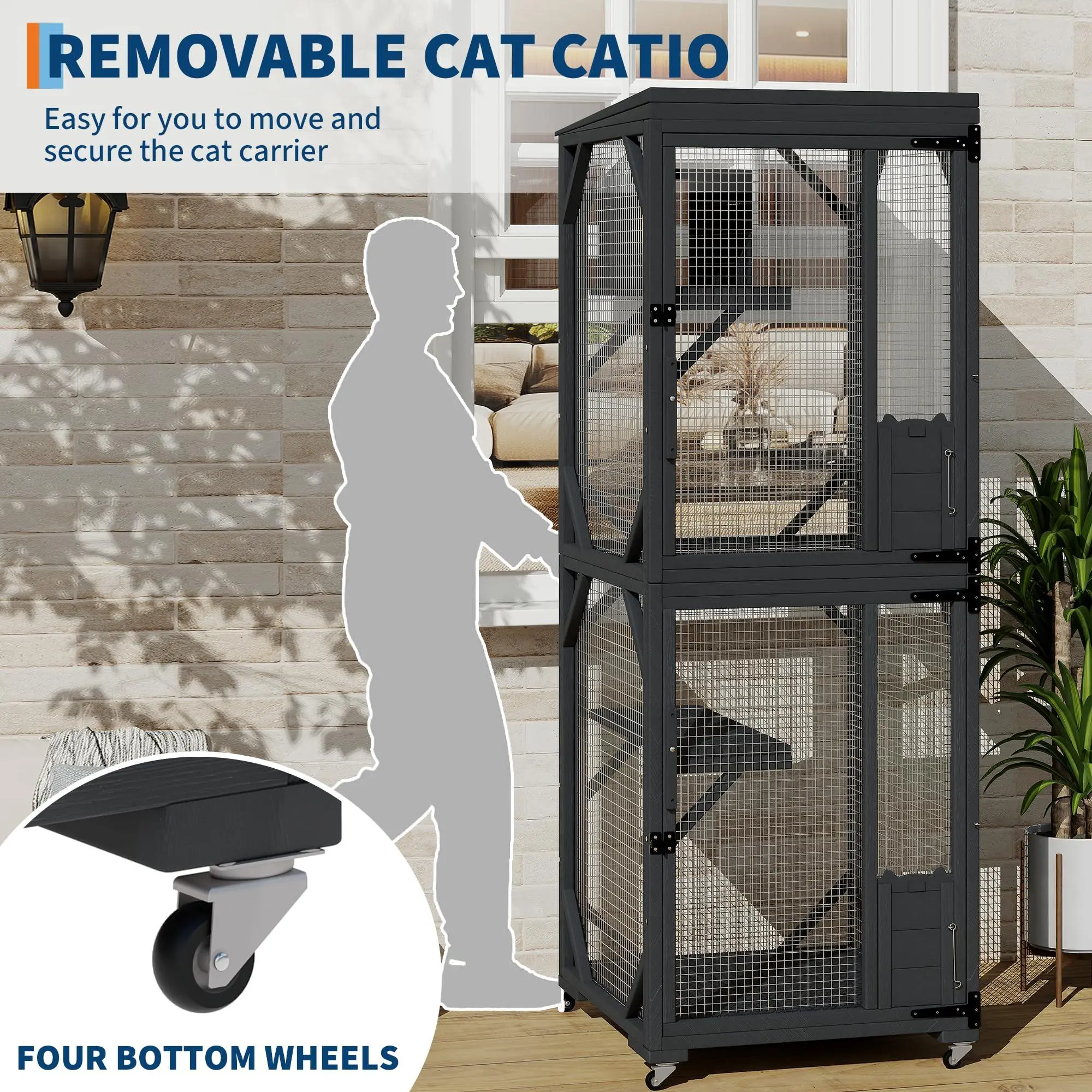 Safe, Sturdy & Cozy – Made with durable metal wire and fir wood, this wheeled catio balances good looks and long-lasting use. It’s built to give your cat the safest, most comfortable outdoor time ever