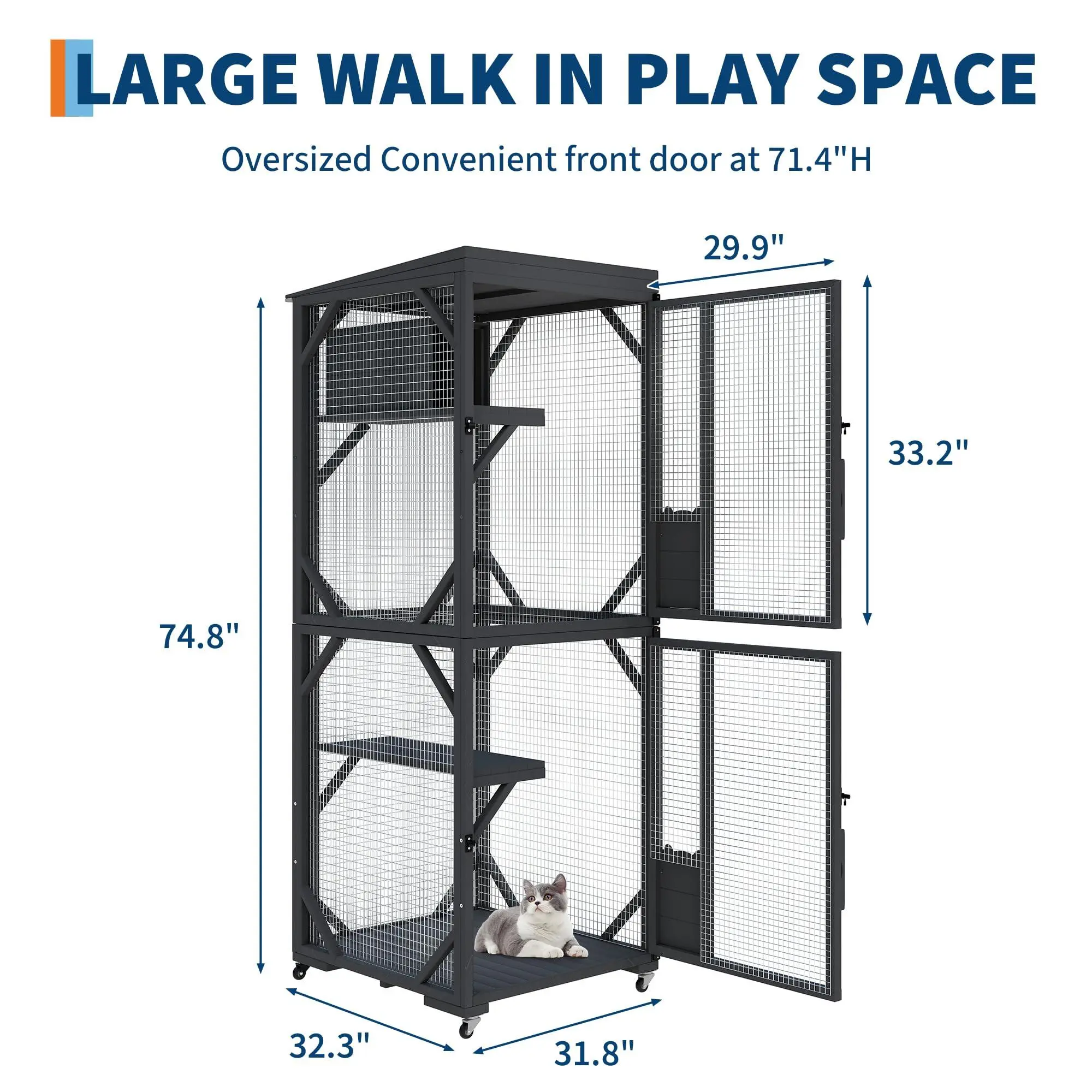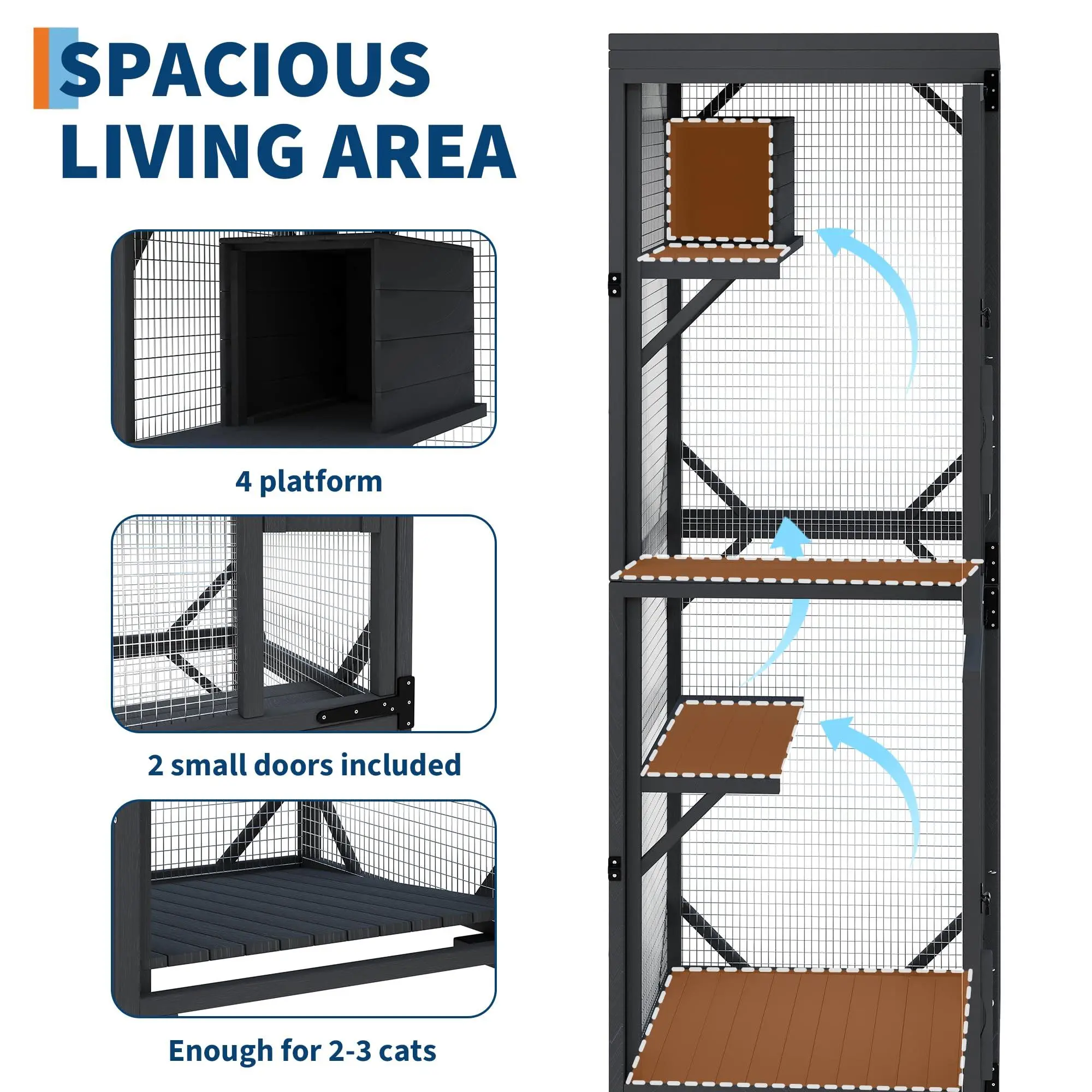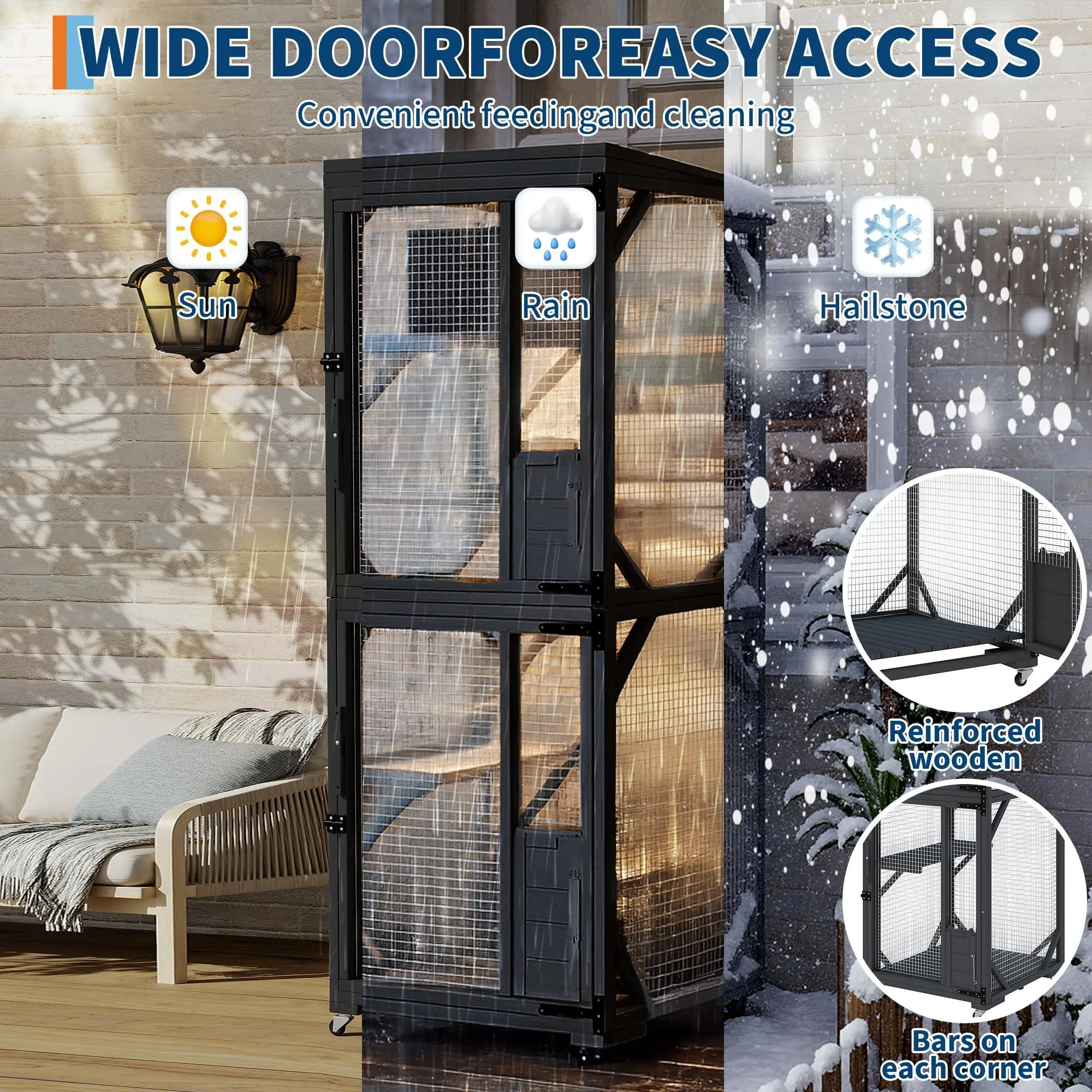 Roomier Play & Rest Space – This spacious outdoor catio features a solid room structure plus an upgraded resting box, giving your cat plenty of room to explore, nap and play in total safety