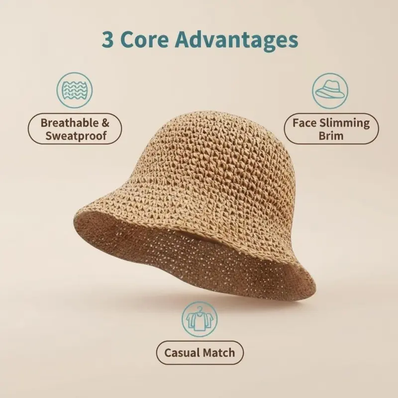 Tired of the same old messy hair or painful sunburns? Meet your new summer BFF. This tightly woven straw bucket hat is not just a look; it's a lifestyle. Stay cool with breathable, tightly knit fibers that keep you refreshed under the sun. The generous brim with a sweet scallop detail provides that easy-going shade you've been craving. Perfectly casual for everyday wear, this solid-color hat pairs with anything from beachwear to coffee runs. Ready to elevate your summer vibe?