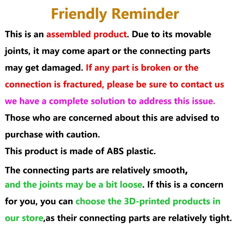 This product requires manual assembly and connection.!!!This product is not a pre-assembled doll, so please purchase with caution.This collection features multi-articulated figures, making it ideal for tabletop decor.Each doll is a carefully crafted creative gift that brings a unique charm to any space.The set includes five dolls that can be displayed once assembled, making it perfect for action doll lovers and tabletop decor lovers.