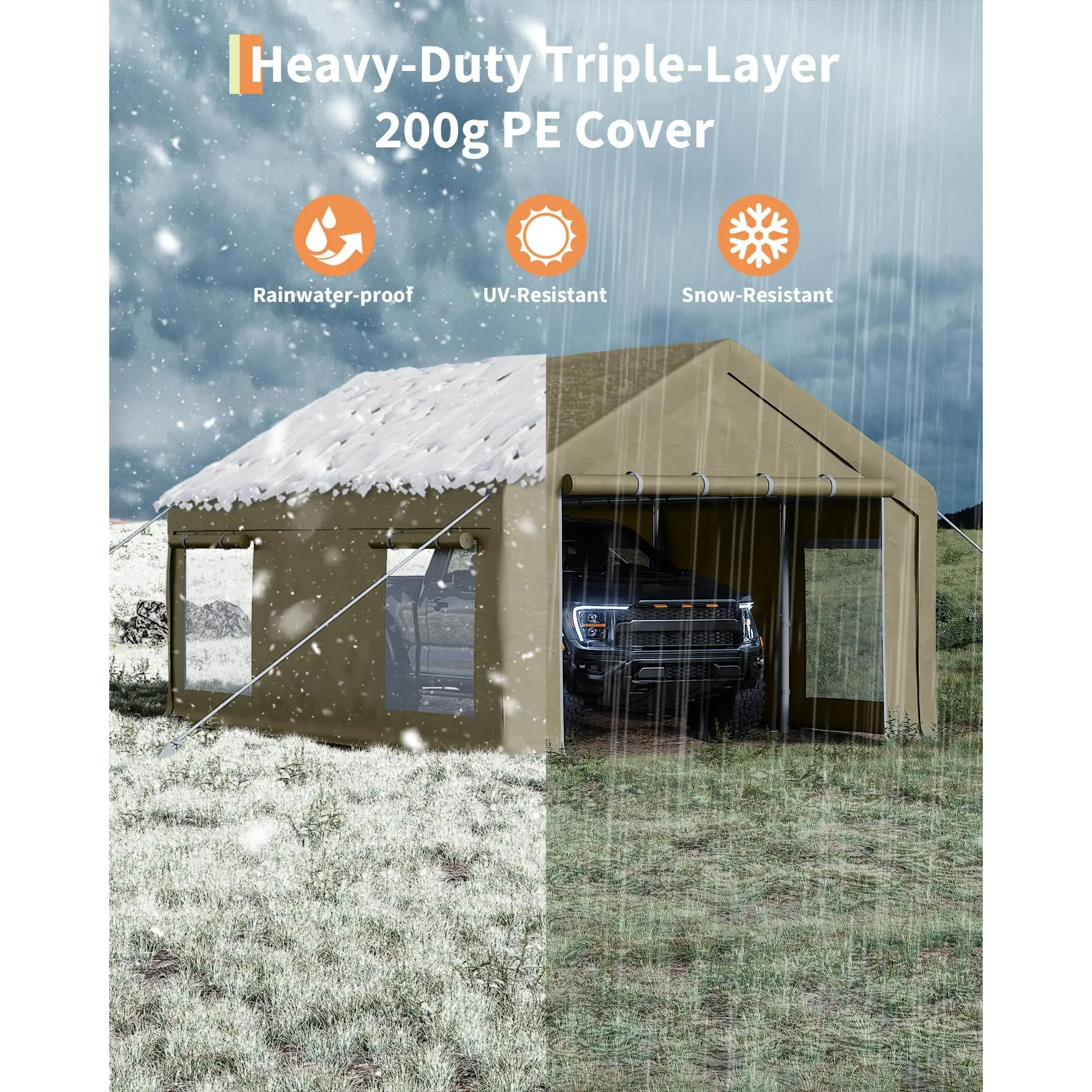 [Spacious & Versatile Shelter] This 200 sq. ft. portable garage accommodates full-sized pickups, bass boats, tractors, and more. Ideal for parties, events, storage, a paint booth, or as a temporary workshop.