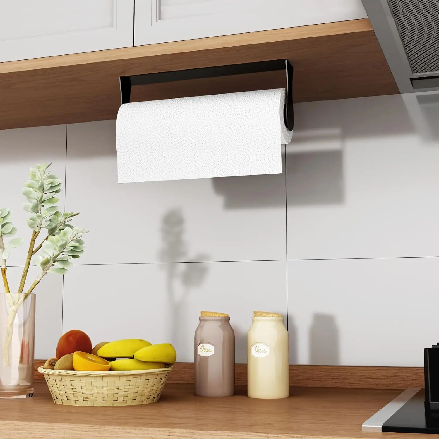 Installing the holder under the cabinet frees up countertop space, making the kitchen look neater. It's perfect for smaller kitchens, blending with modern decorations and appliances. This stainless steel holder adds a fashionable and modern touch to your kitchen.