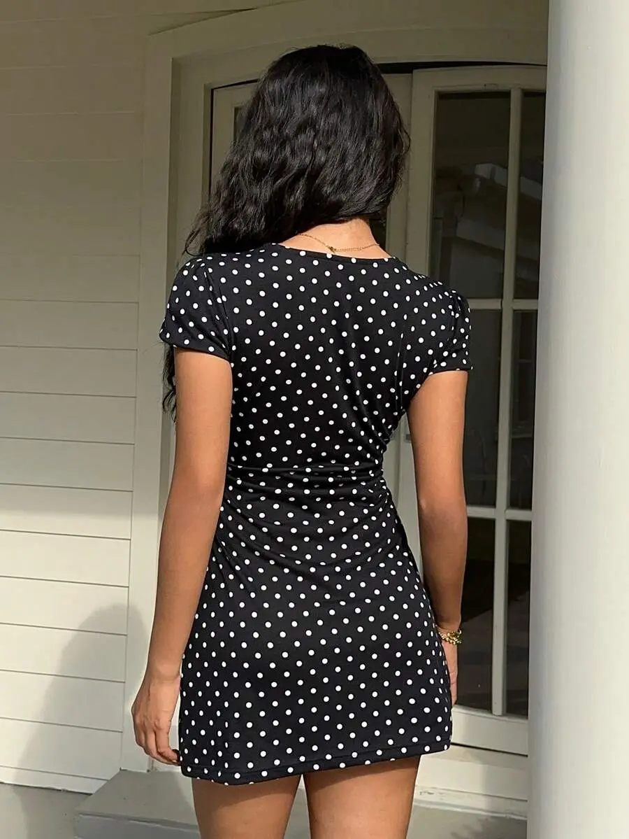 Polka Dot Asymmetric Bubble Skirt Mini Dress