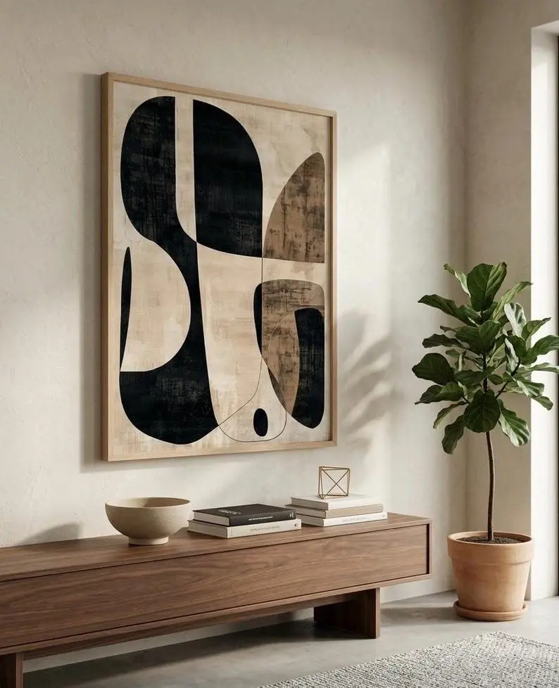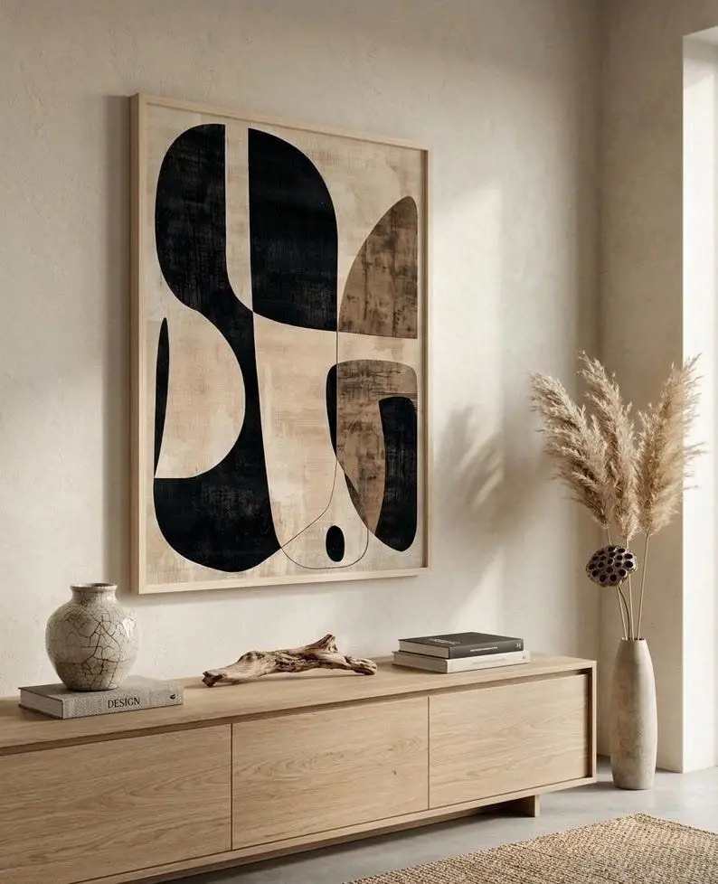 5. Minimalist Wabi Sabi Wall Art, Beige Brown Abstract Line Print, Neutral Boho Wall Decor1 - (Unframe)