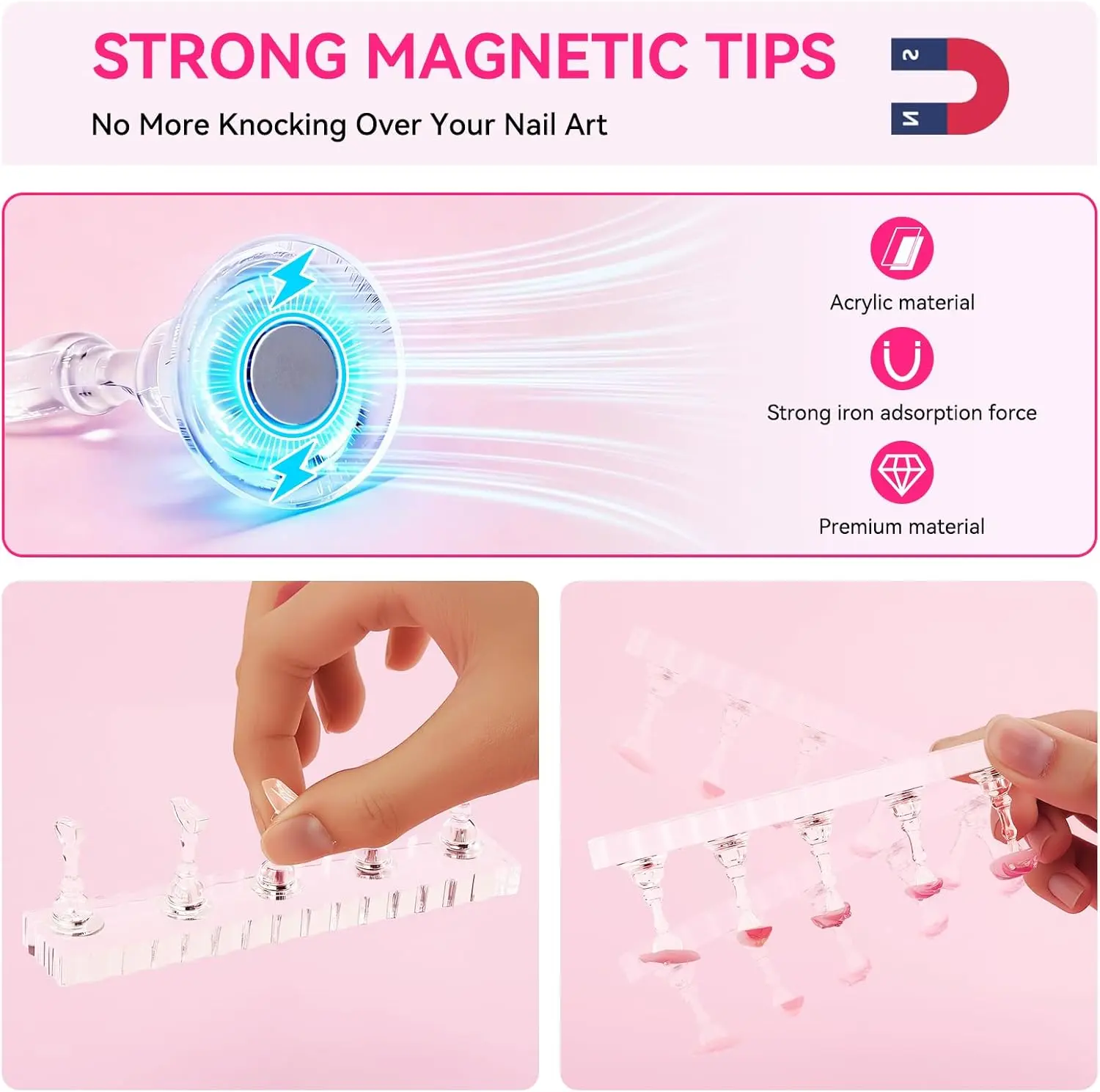 ·Nail Holder for Painting Nails Pro Kit: Elevate your nail art game with our deluxe set—2 acrylic nail art stands, 1 heart-shaped press on nail stand, and 200 durable double-sided tapes,come with a sturdy storage box. The magnetic acrylic nail holder grips press-ons securely for free nail painting, UV curing, or intricate nail tech designs. Perfect for salon pros, DIYers, or glitter-obsessed beginners—turn any space into a mini nail studio