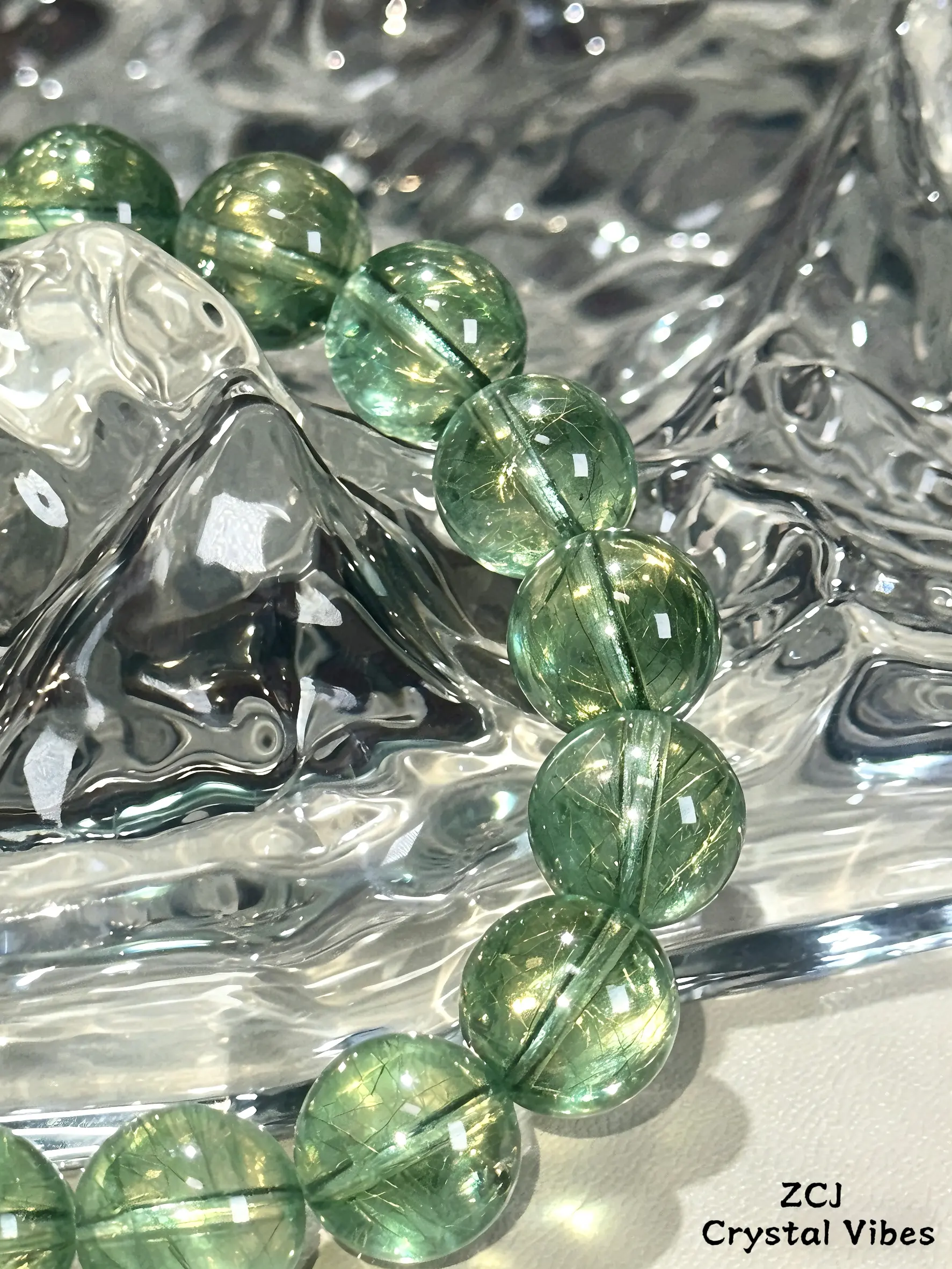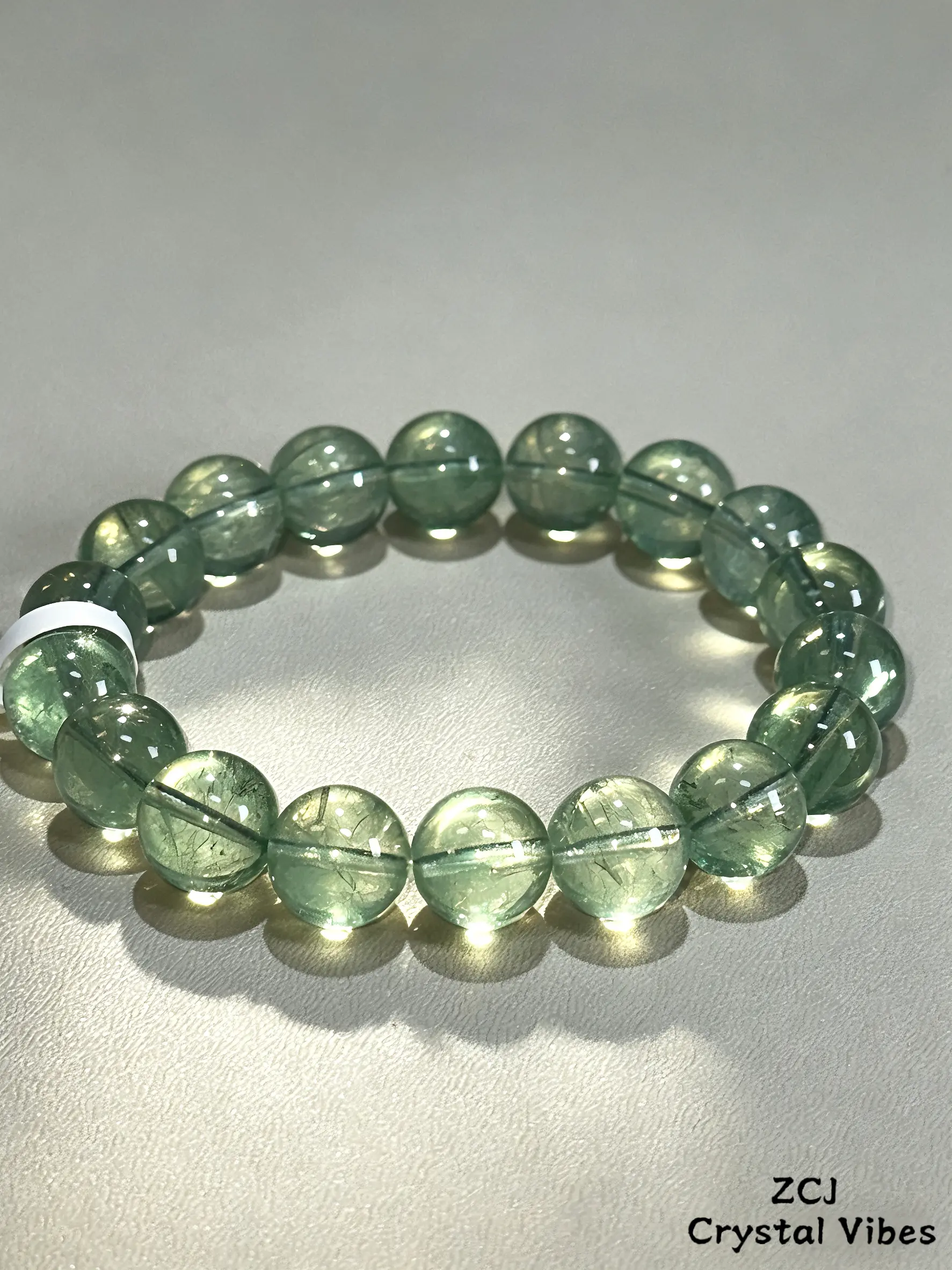 This green fluorite bracelet combines elegant crystal luster with timeless design, a stylish and meaningful addition to your jewelry collection.