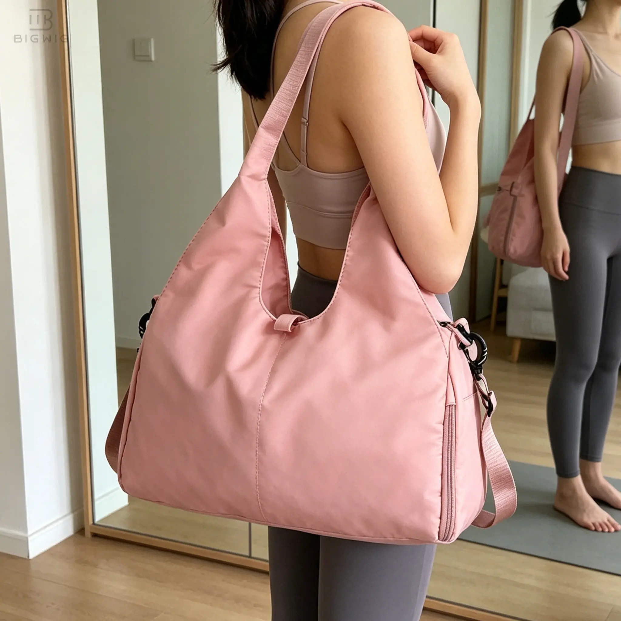 Integrated Yoga Mat Strap: Features adjustable exterior buckles to securely carry any size yoga mat—no more struggling with extra gear.