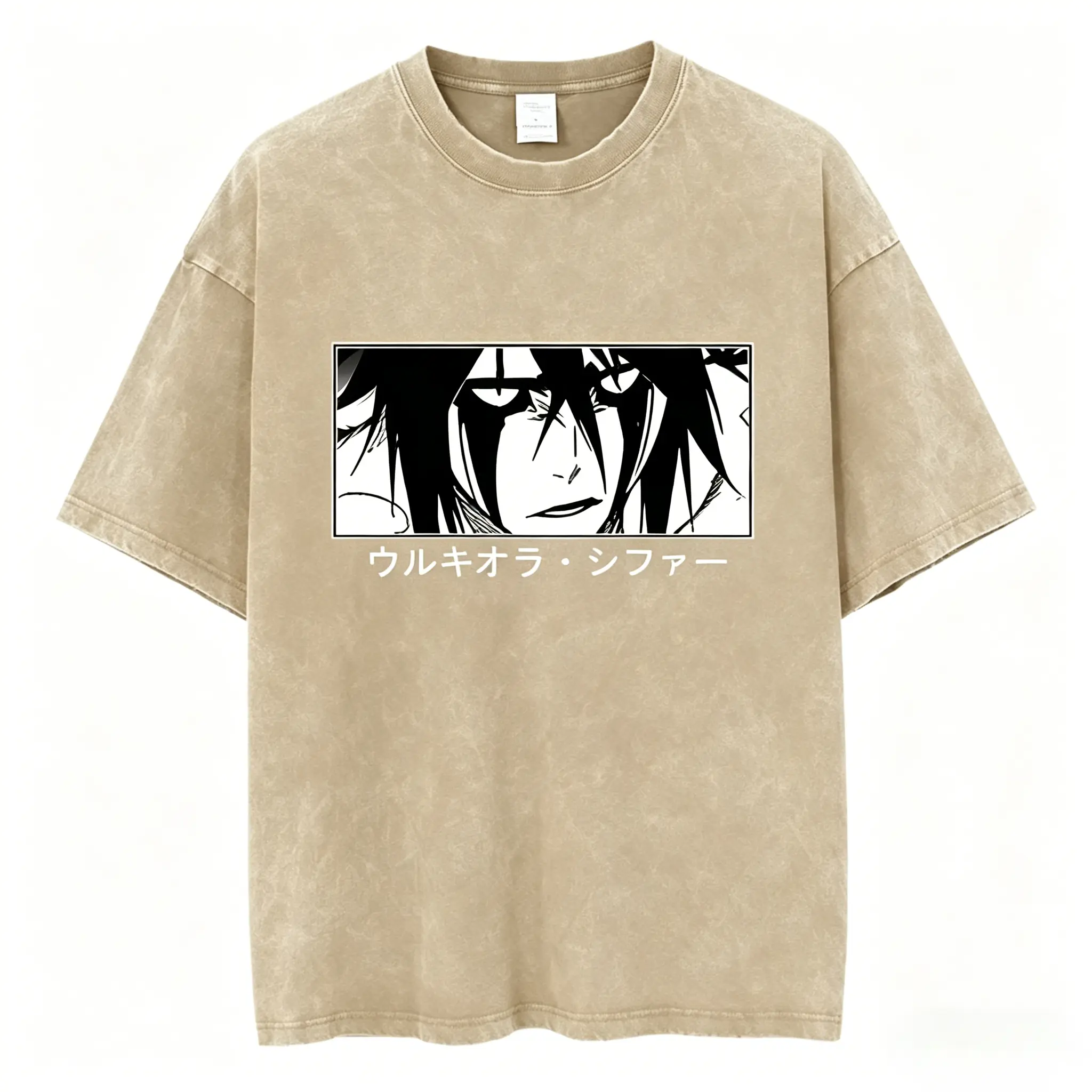 Crafted from heavyweight cotton with a vintage acid wash finish, this tee is breathable and lightweight. Pre-washed for a soft, lived-in feel, it ensures all-day comfort. The detailed portrait print resists fading and cracking, maintaining its retro look. Ideal for anime conventions or casual wear.