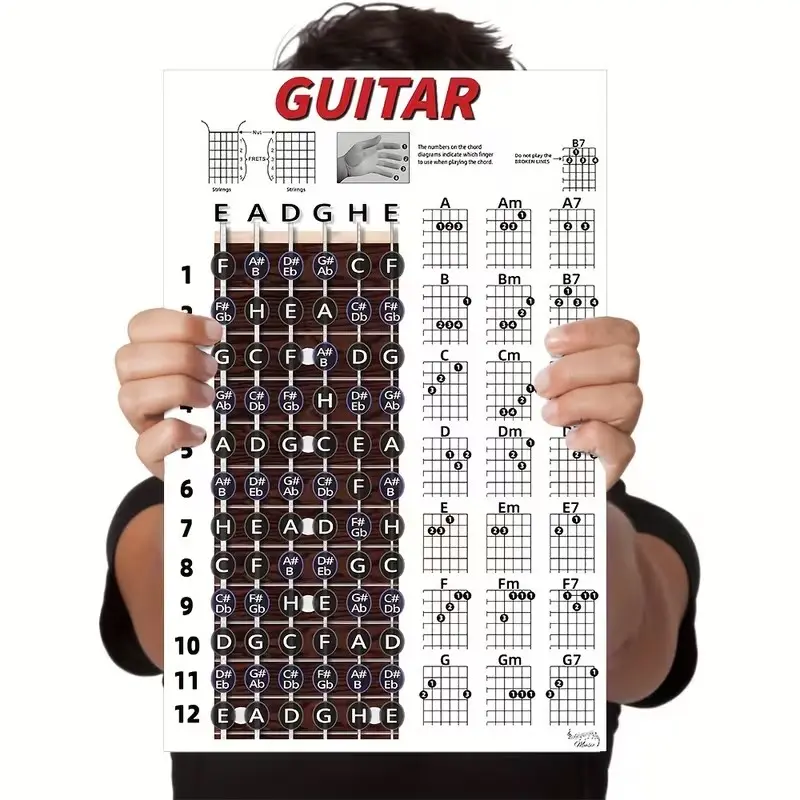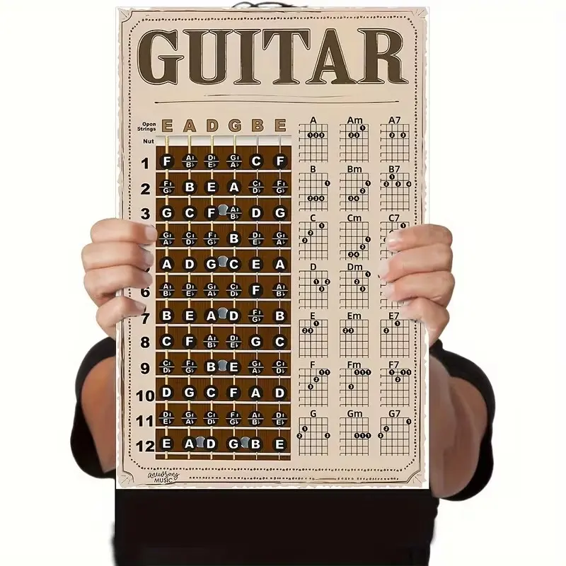 【Beginner Friendly】: Ideal for beginners, this poster provides clear chord and note charts for easy learning.